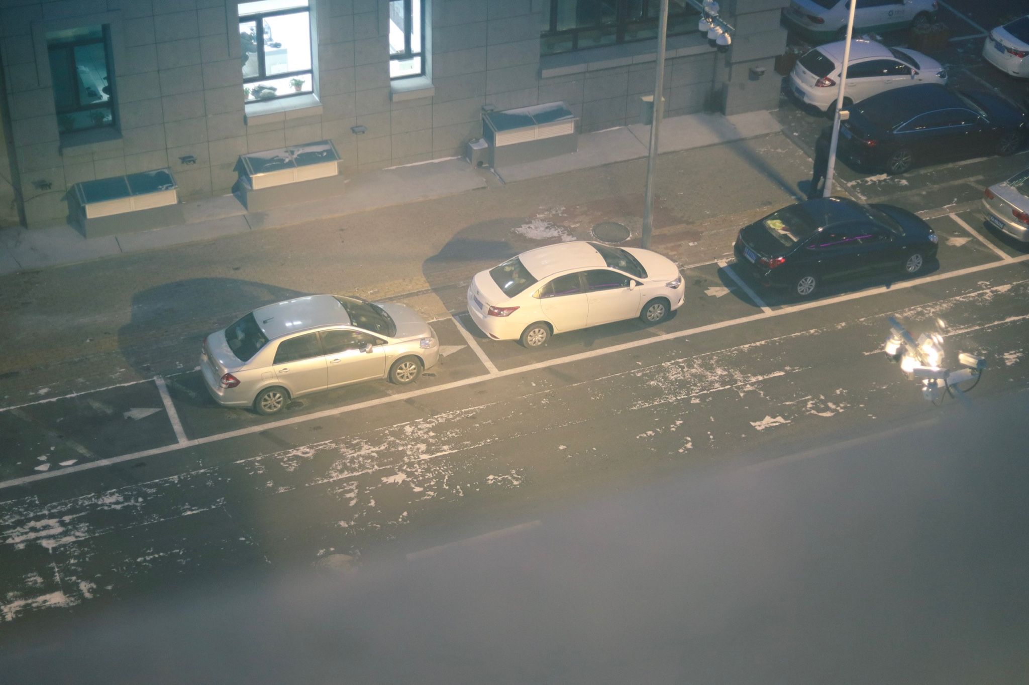 市区,沿着路边被清扫过的雪堆缓缓前行,经过标志性建筑