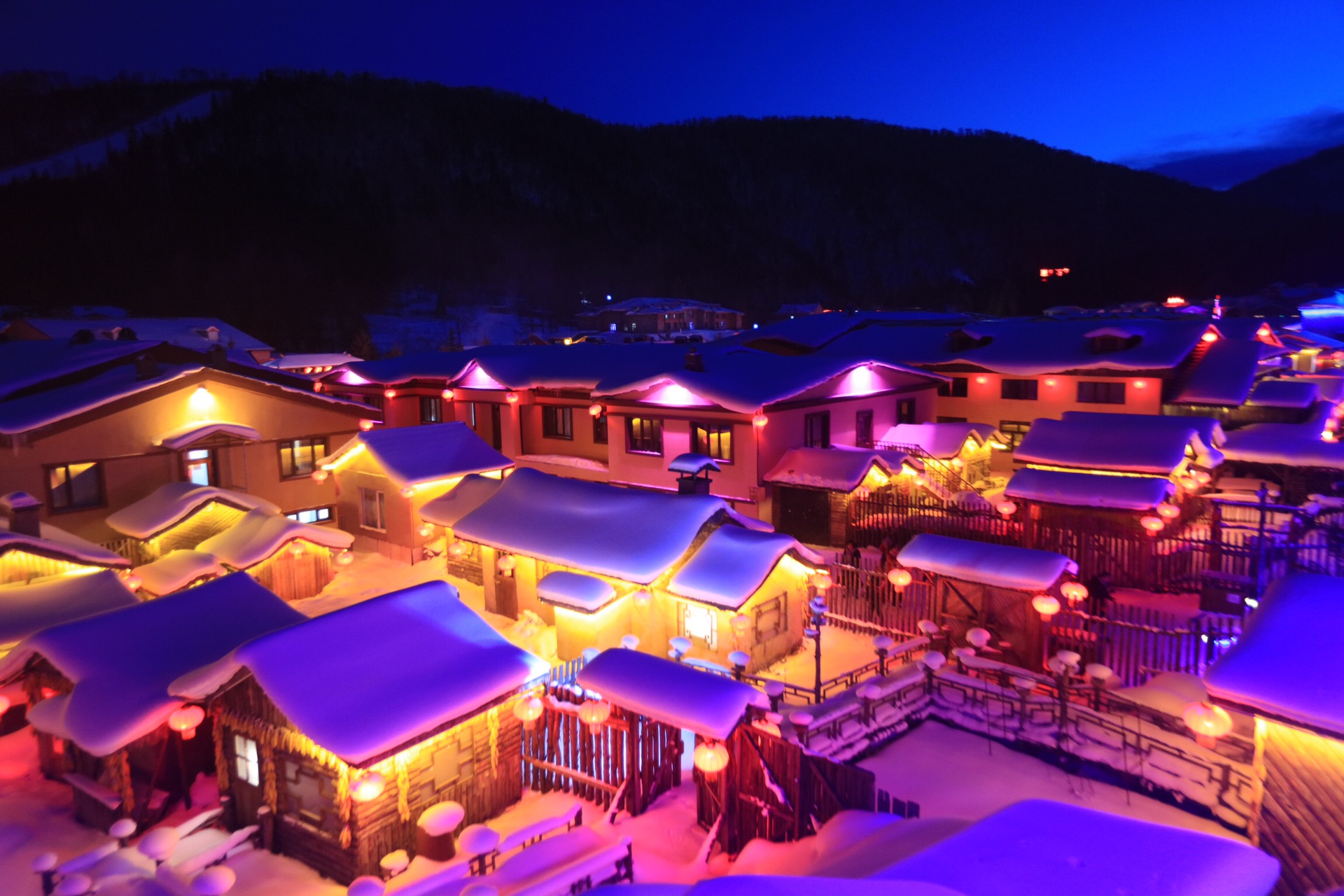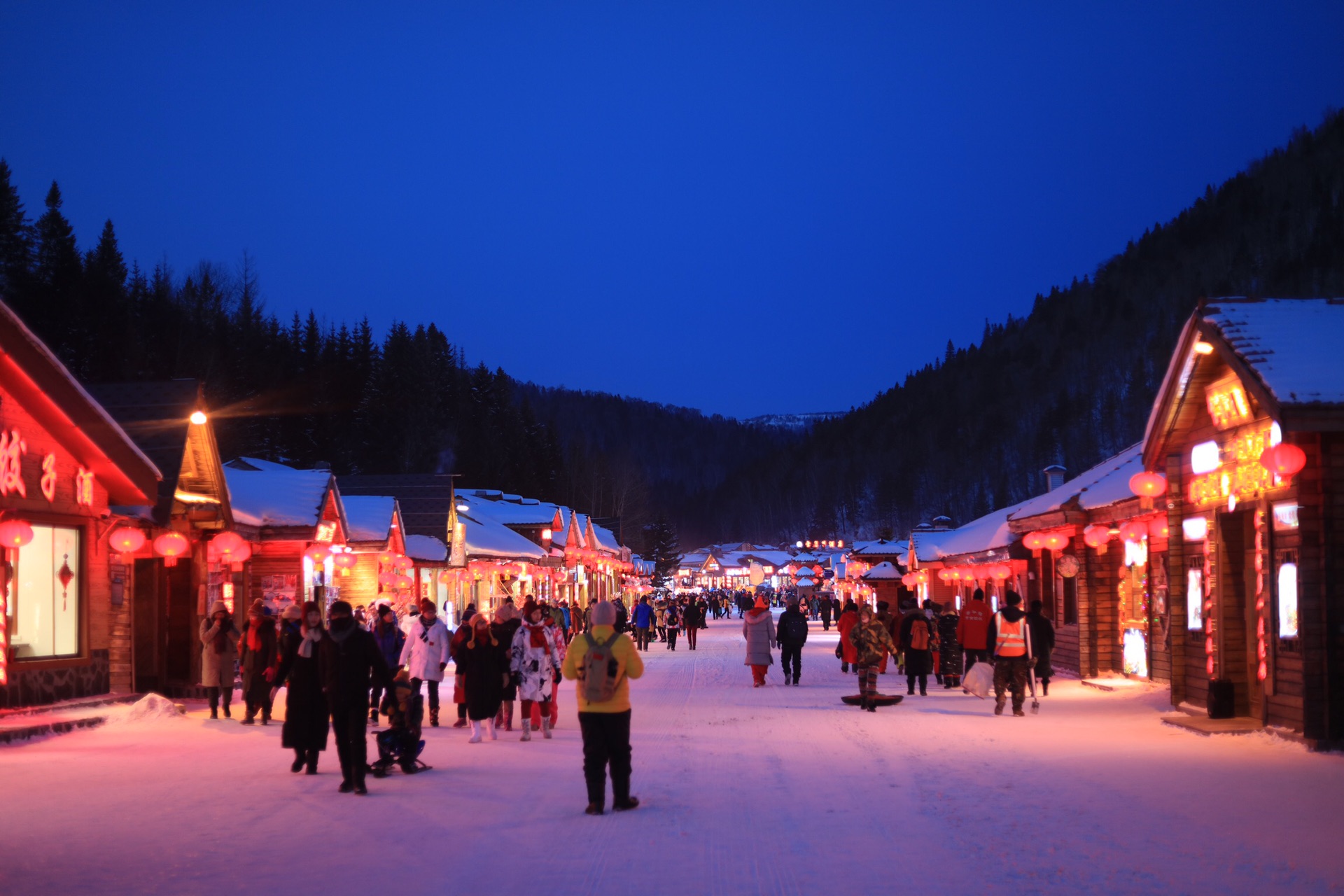 雪乡国家森林公园-中国雪乡风景区办完事儿去街上溜达,夜晚的 雪乡 比白天更好看