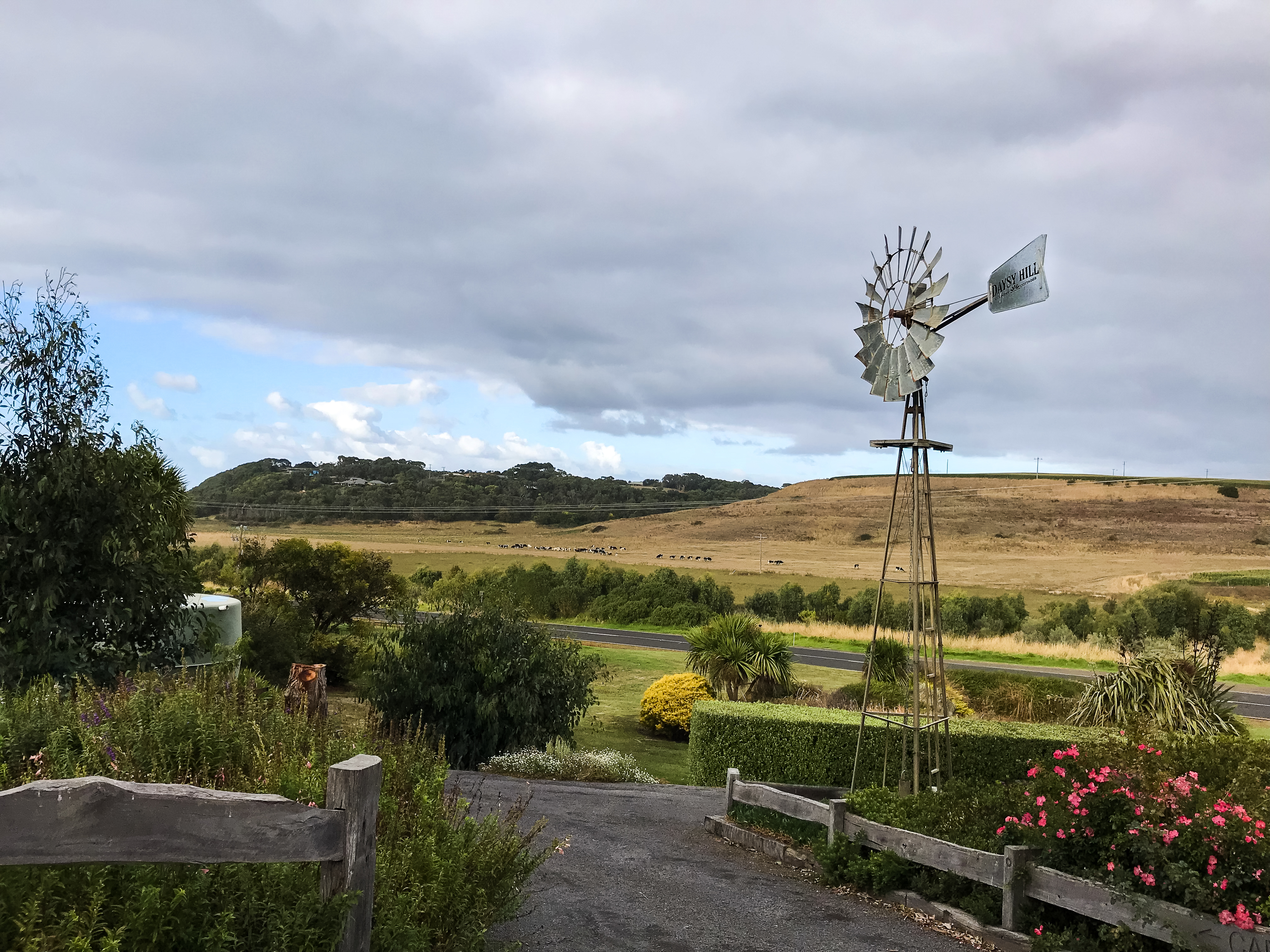 这一路几乎都是南澳的农场,大片大片成群的牛羊,草垛,风车,谷仓等等。