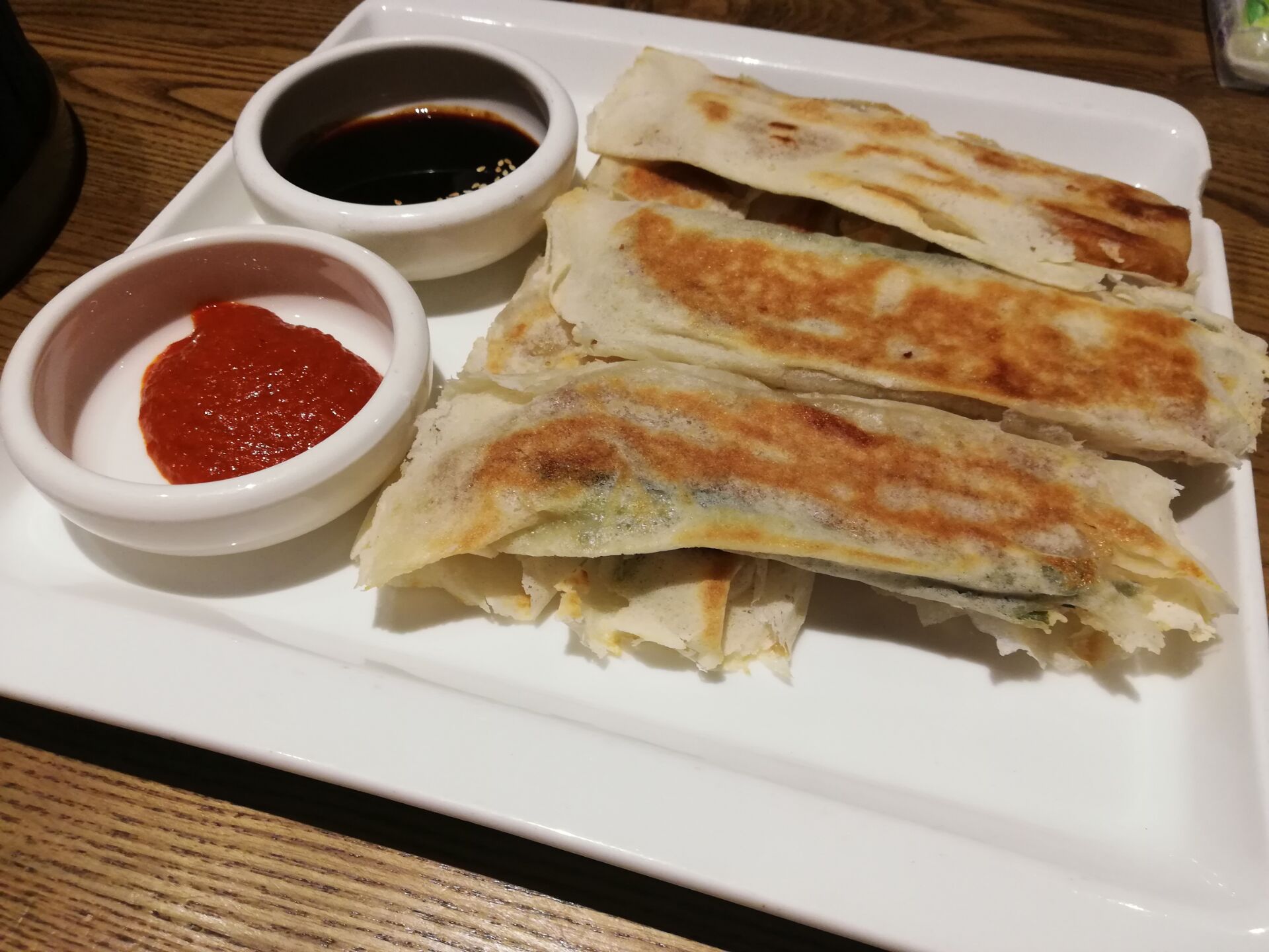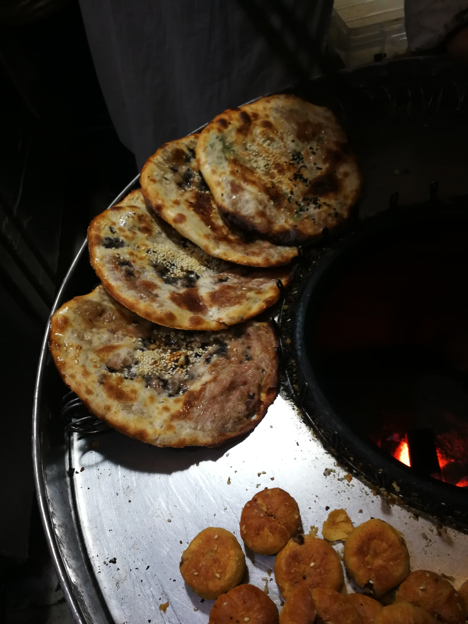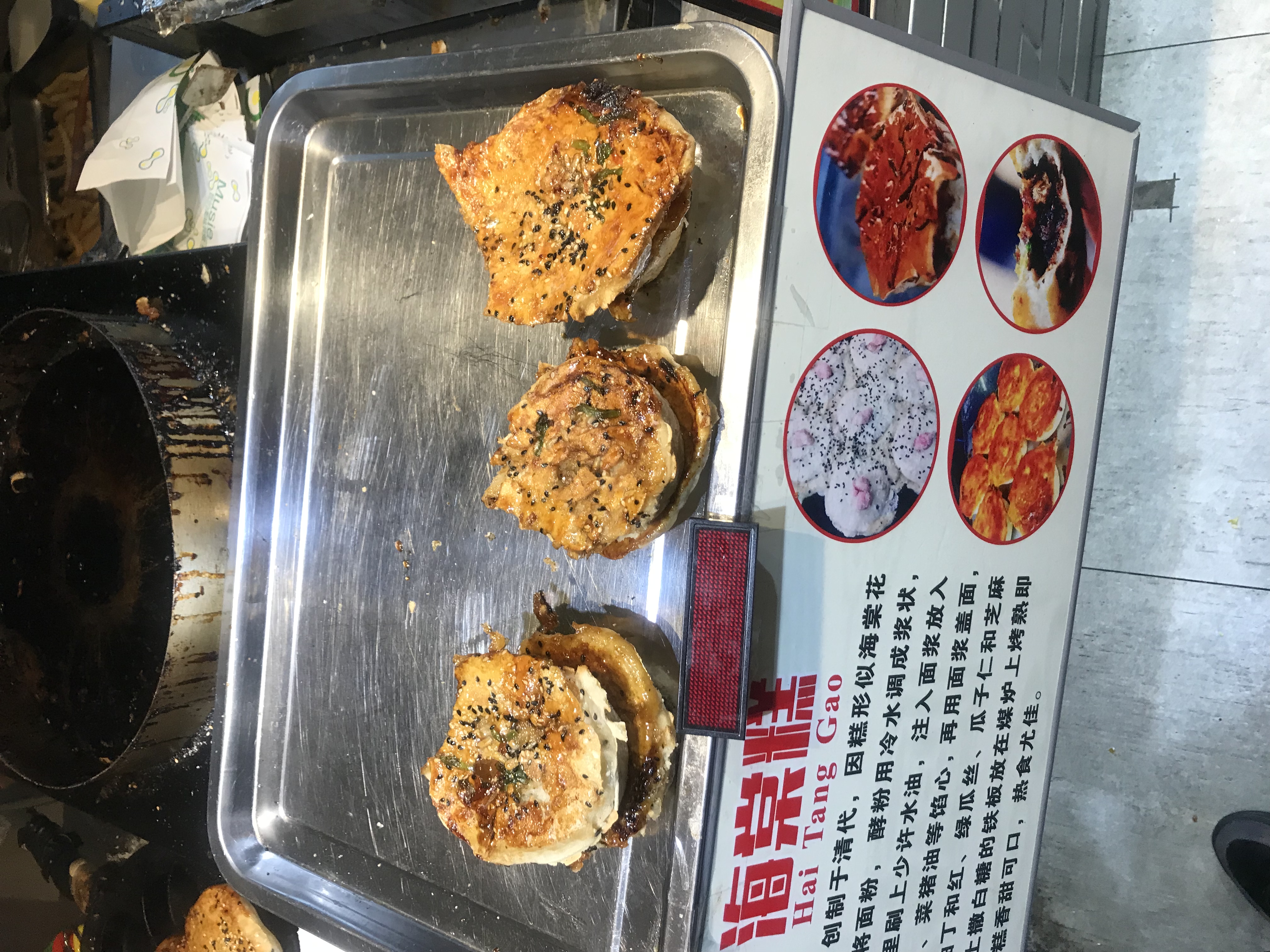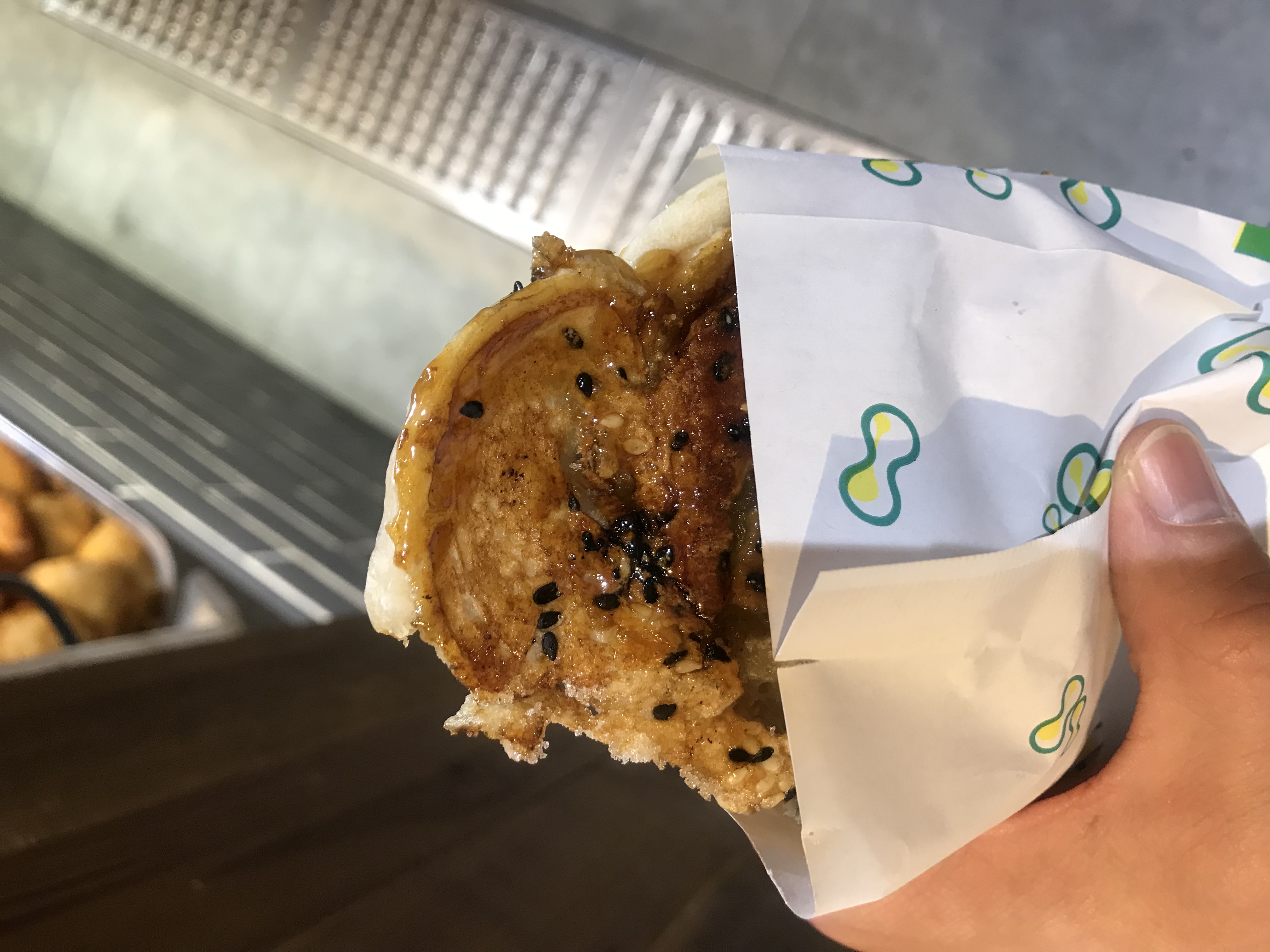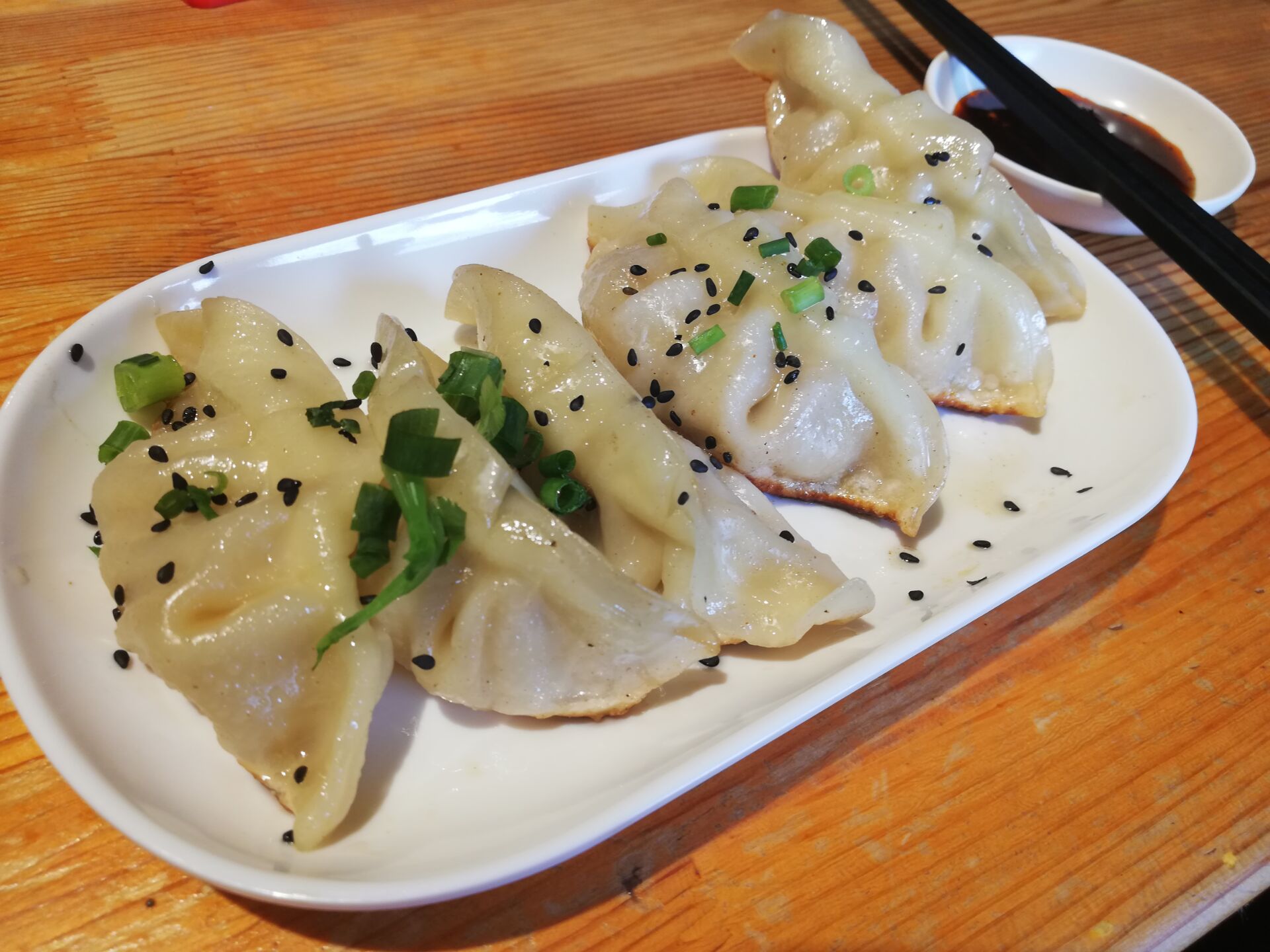 路边就有很多小店卖生煎,图里是在街边吃的一小盘锅贴。