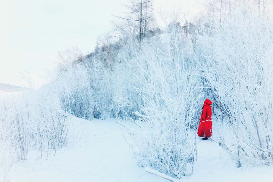1.上衣:衣物以四层为基础,外套以红色、黄色为主,在白色苍茫的雪景中,摄影效果更佳。