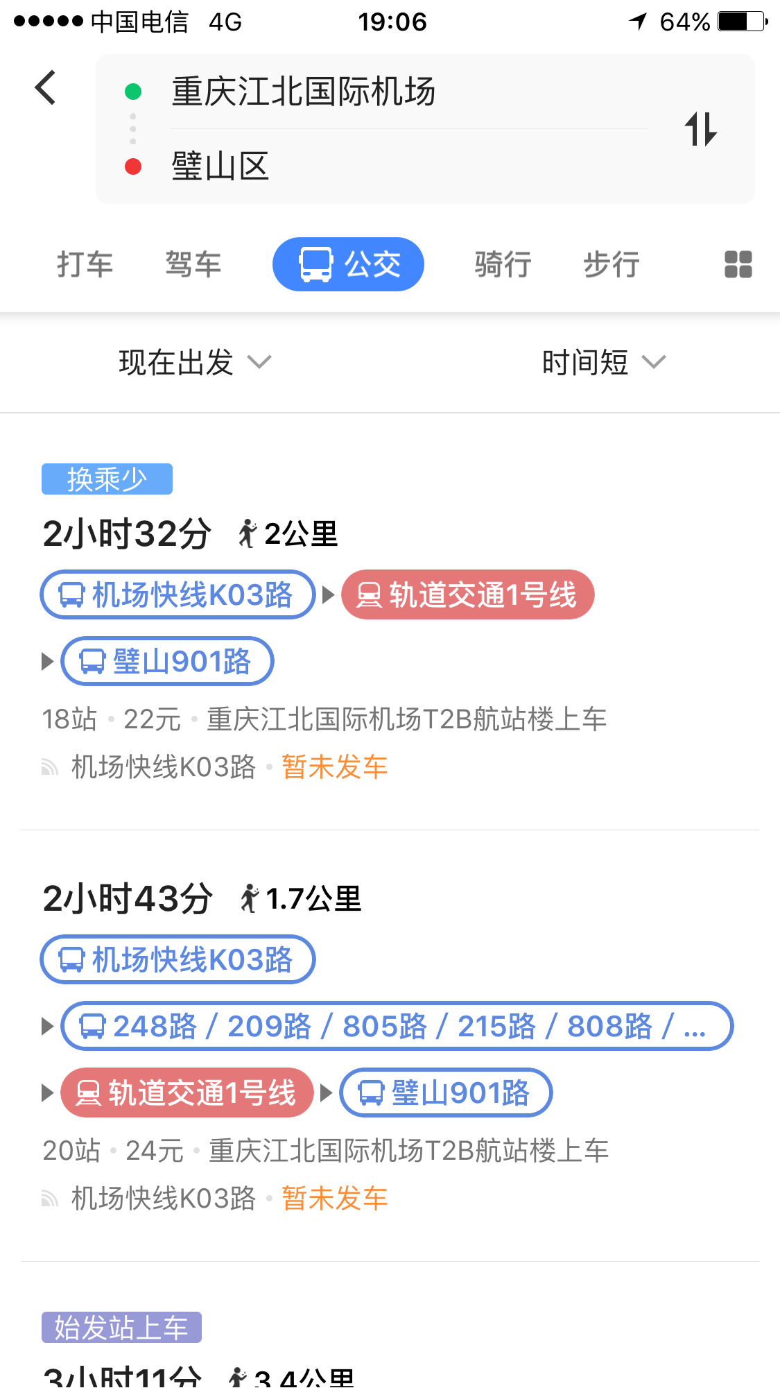 地铁3号线+地铁1号线 壁山901路。前几天正好去了重庆璧山,路线很简单。重庆机场乘坐地铁3号线到两路口地铁站,换乘地铁1号线到大学城地铁站2口出,出站右手过十字路口,就是壁山901路的始发站,乘坐壁山901路公交车(车票2元)去壁山即可。========== 如果你觉得TA的回答不错,快来...显示全部