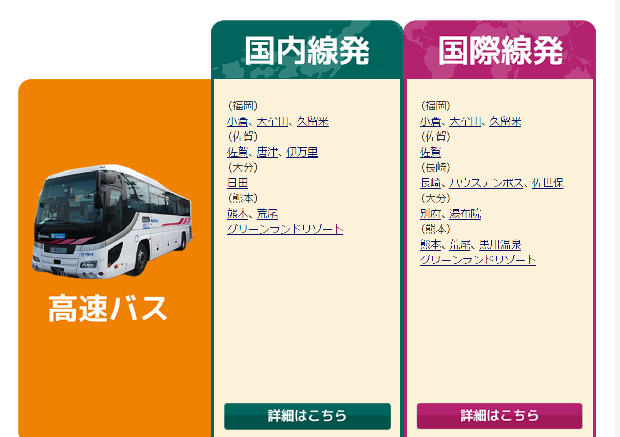 机场的高速巴士没有到宫崎的,最多就到北九州。去南九州要去博多站坐火车或者西铁巴士========== 如果你觉得TA的回答不错,快来给TA点个赞吧! 你的支持是对作者莫大的鼓励~显示全部