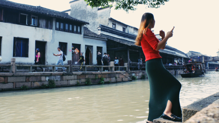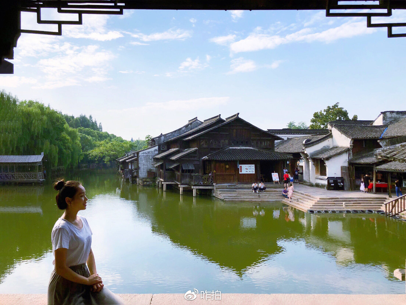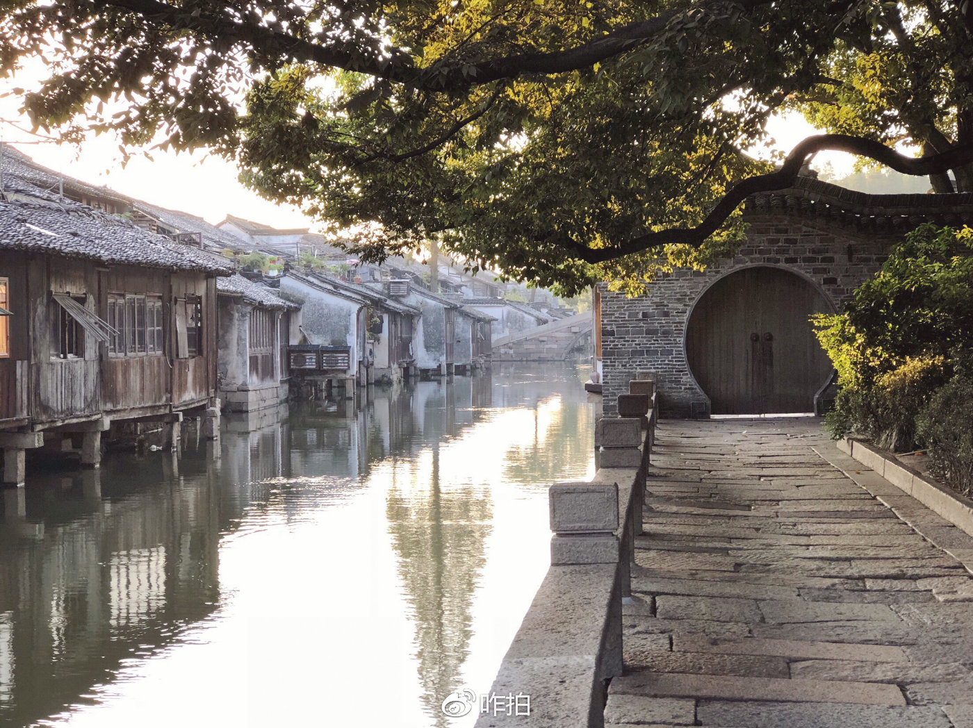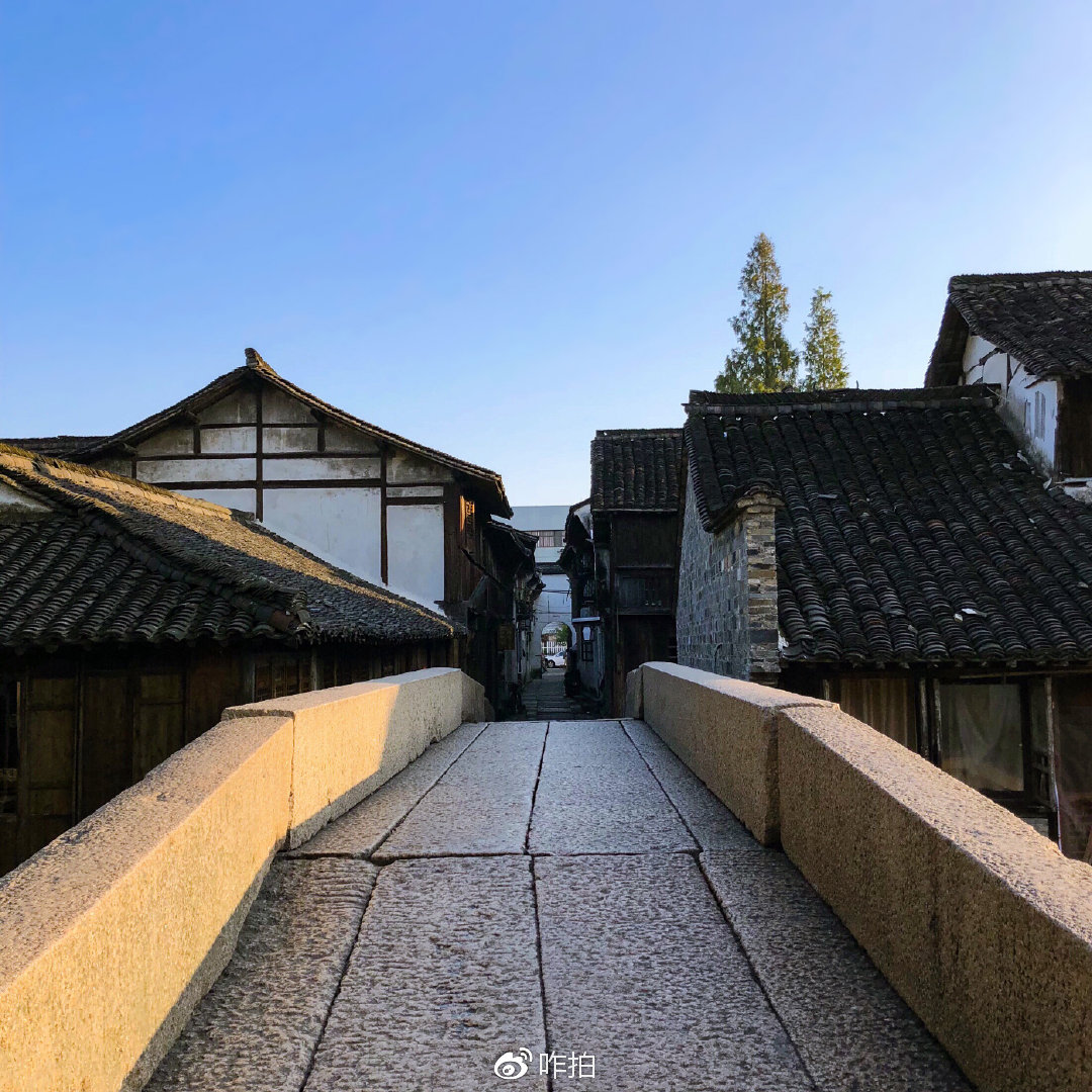 北岸著名的一个必打卡的地就是茅盾故居了,人很多,进去根本没法拍照,所以你在门口仰拍一张这样的照片 还是蛮不错的: