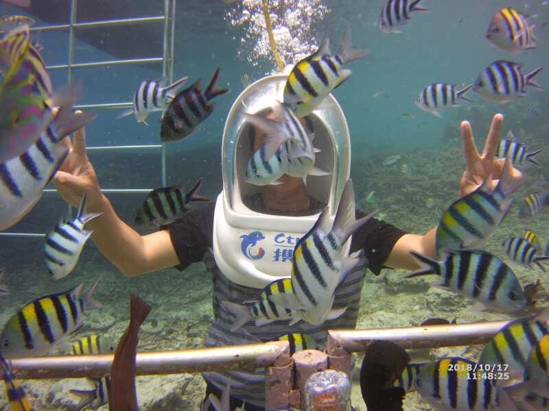 [题主采纳]很高兴为您解答,蓝梦岛海底漫步是在规定区域内的,游客在专业潜水人员的监控下,带上透明玻璃氧气头盔,漫步在水深3—10米的海底,有人会有耳压和轻微疼痛感,我也有点耳压感觉,这个因人体质而异。只要全程按照教练教的闭着气然后然后使劲往外鼓气来从里到外的和耳压对冲,过了差不多十几二十秒才缓解到适应。如...显示全部