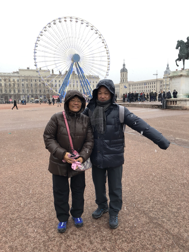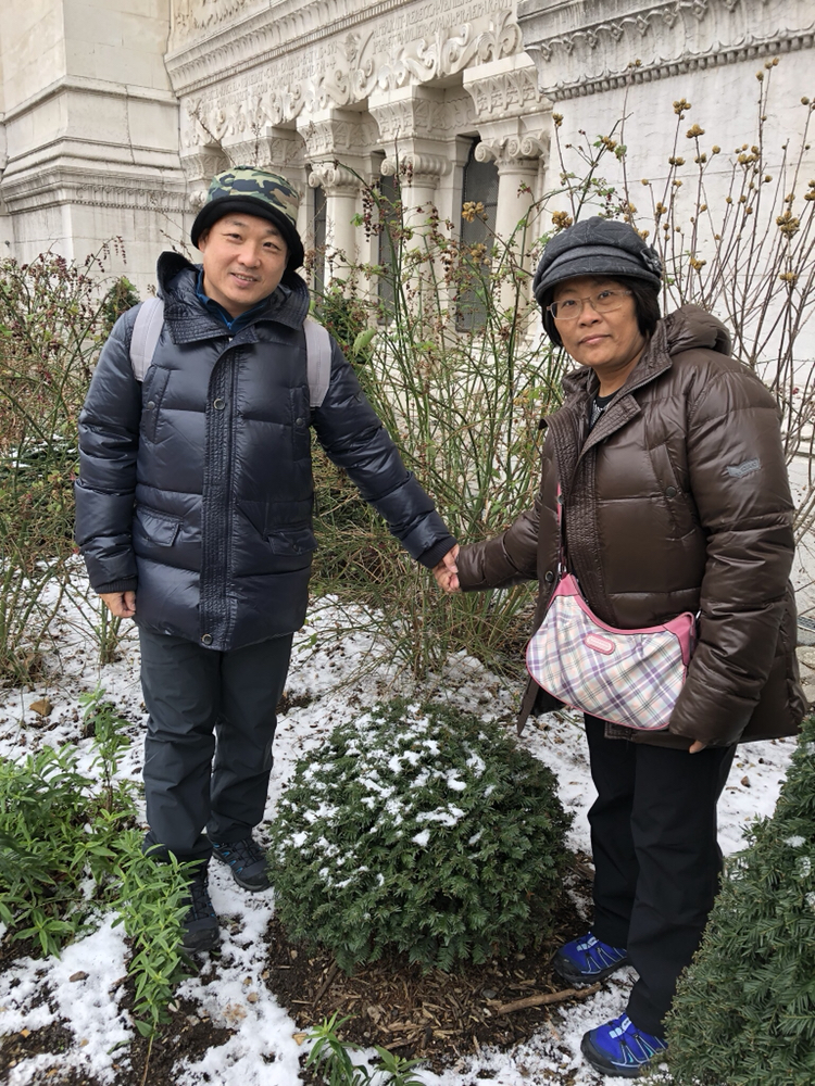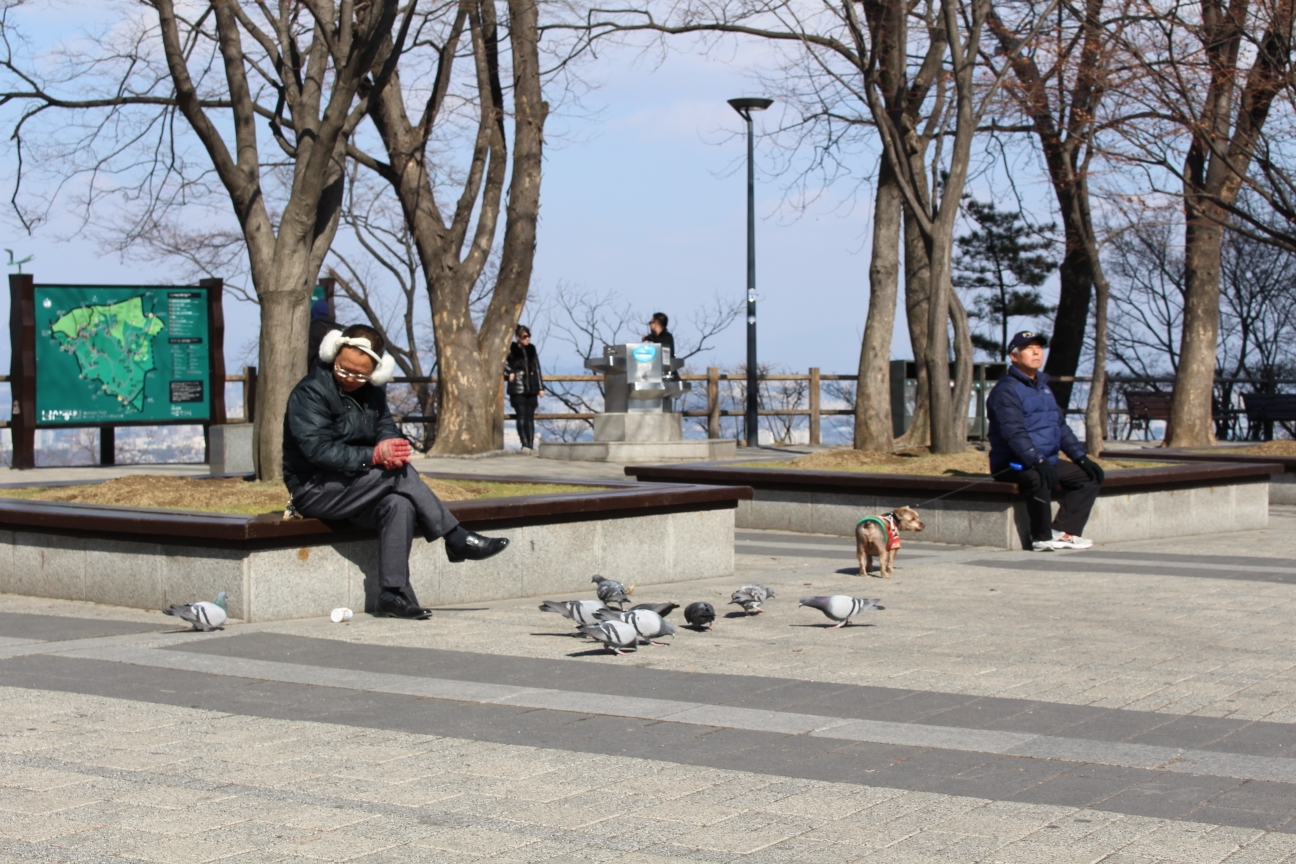 这是我们在韩国的山上,他冷得很,戴着我可爱的耳罩,日常是很难发现这一面的