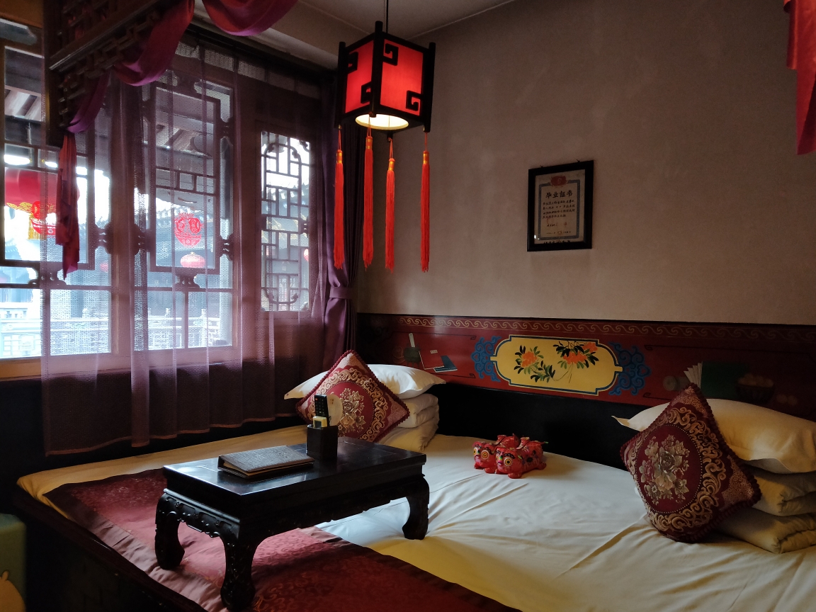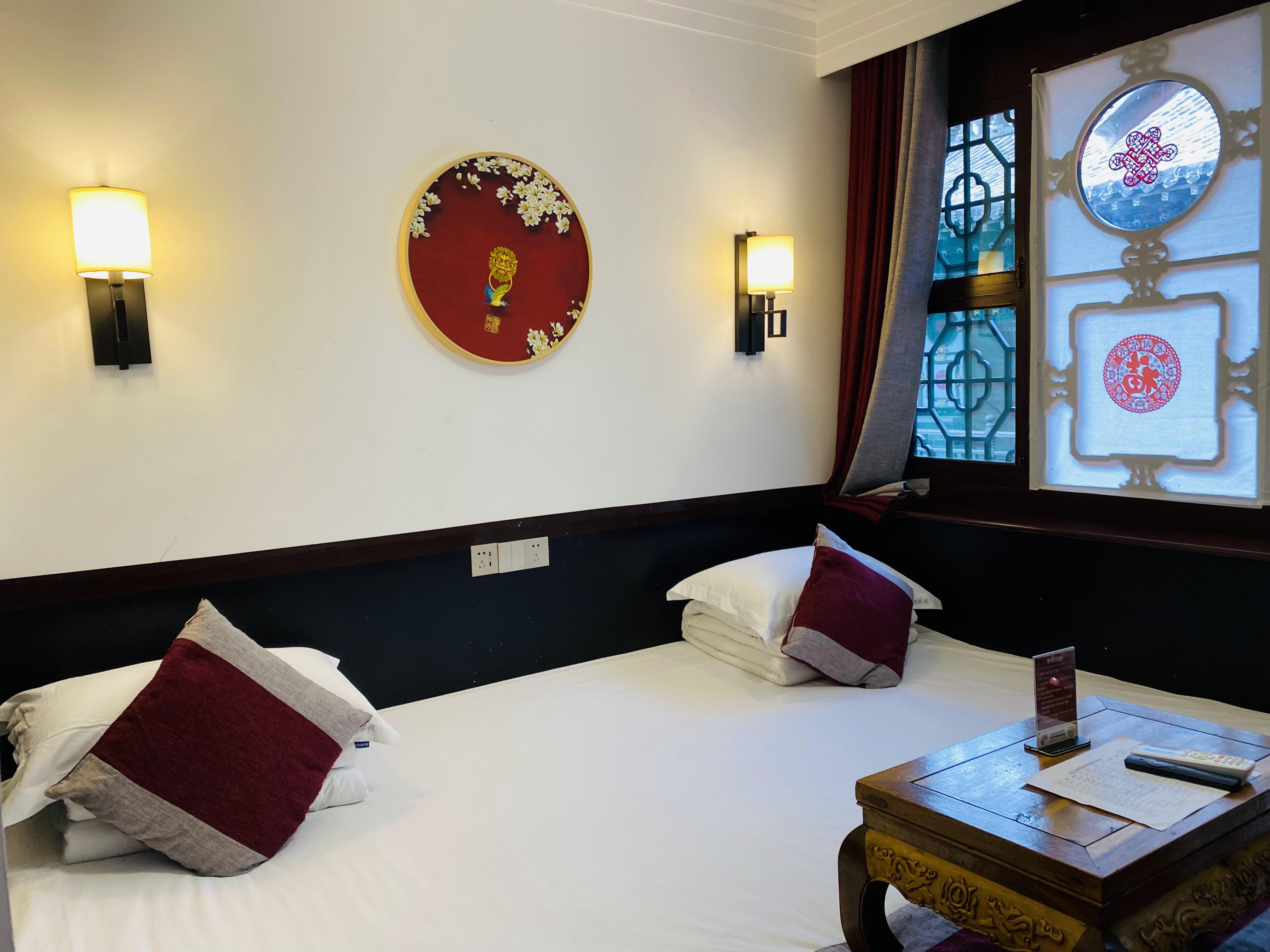 客栈的设计是简约清新的古典风格,简单 大方 ,很赏心悦目,房间都有大大的窗户,采光通风都很好,而且民俗是最典型的四合院,从窗户便可以看到邻居家的那种感觉。