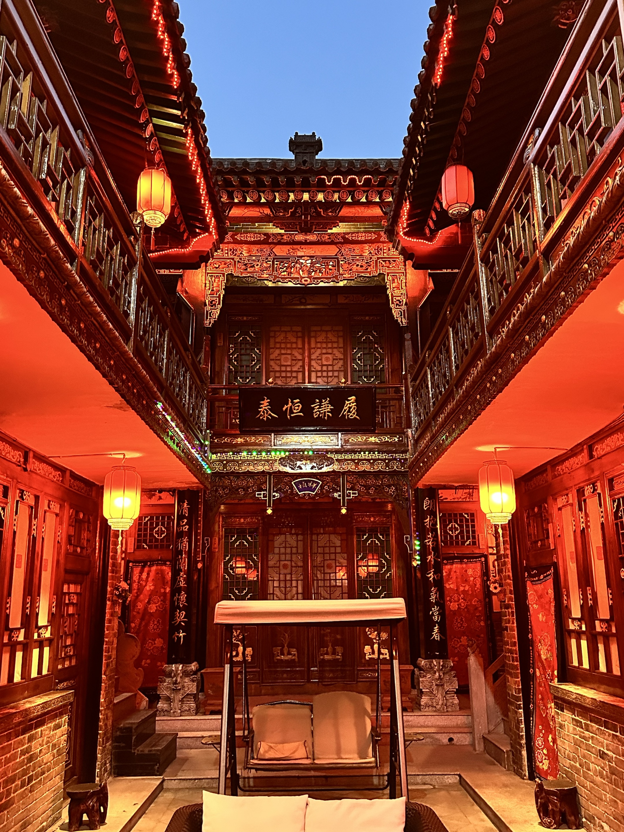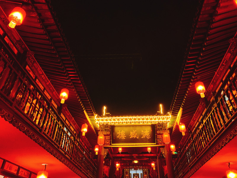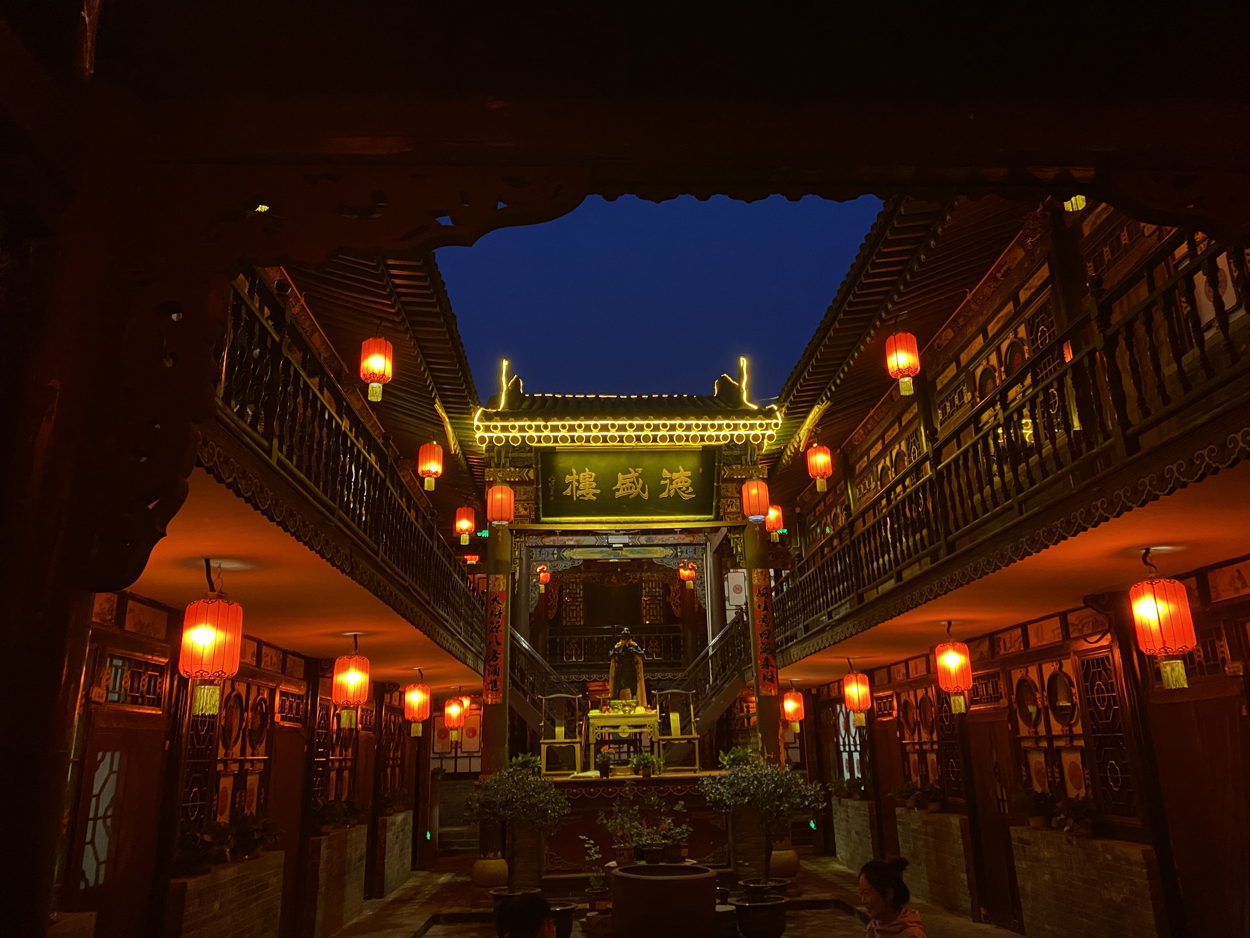 德盛楼客栈是二层楼的小院建筑,果果一到客栈就很开心,客栈前面是餐厅,我们需要穿过餐厅才可以到客栈,谁都不曾想到,这么大的餐厅后面还藏着世外 桃源 ,小院安逸且带点别致,别致在小院中的戏台,别致在二层楼的建筑,别致在贴心的服务。