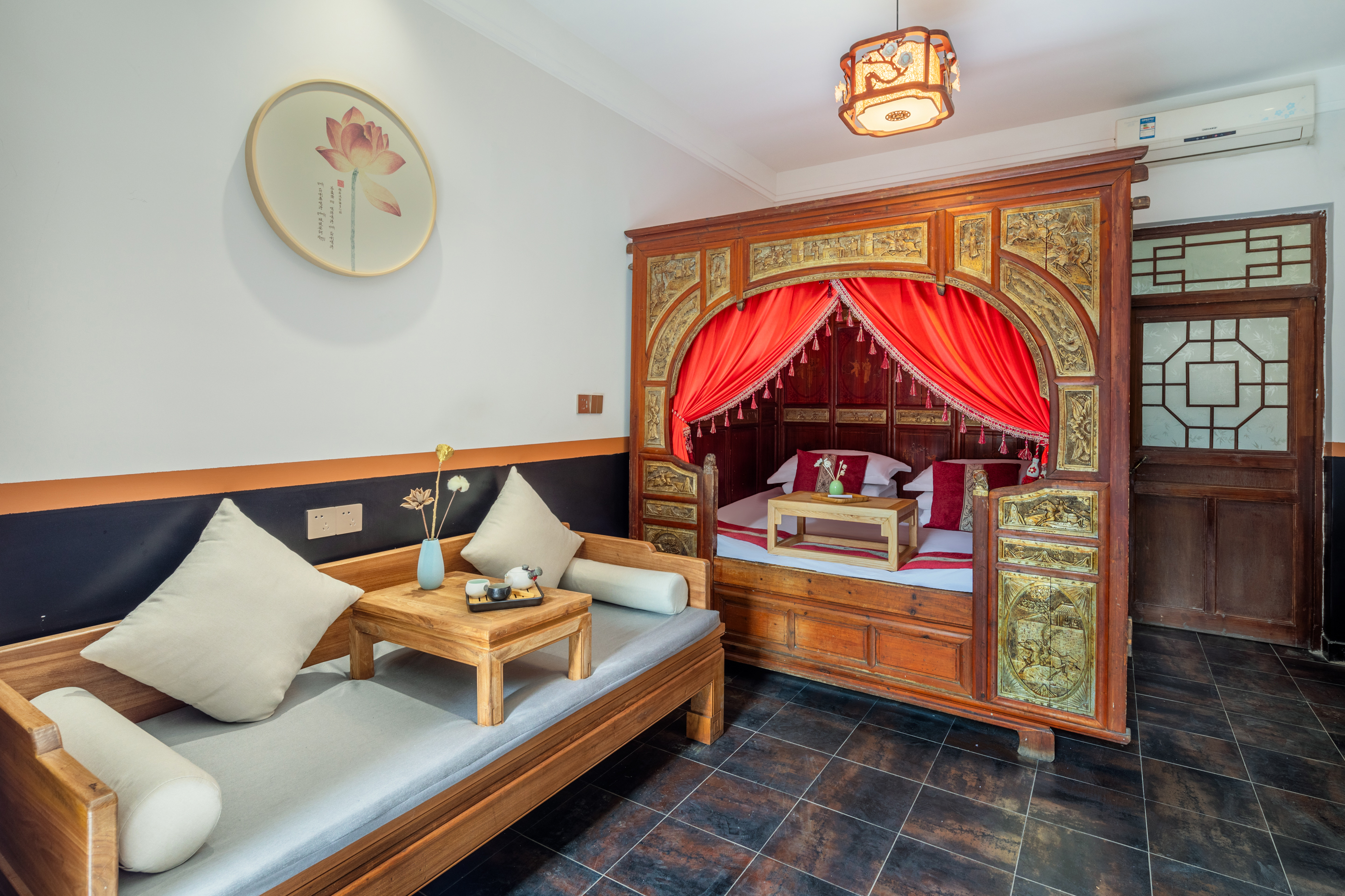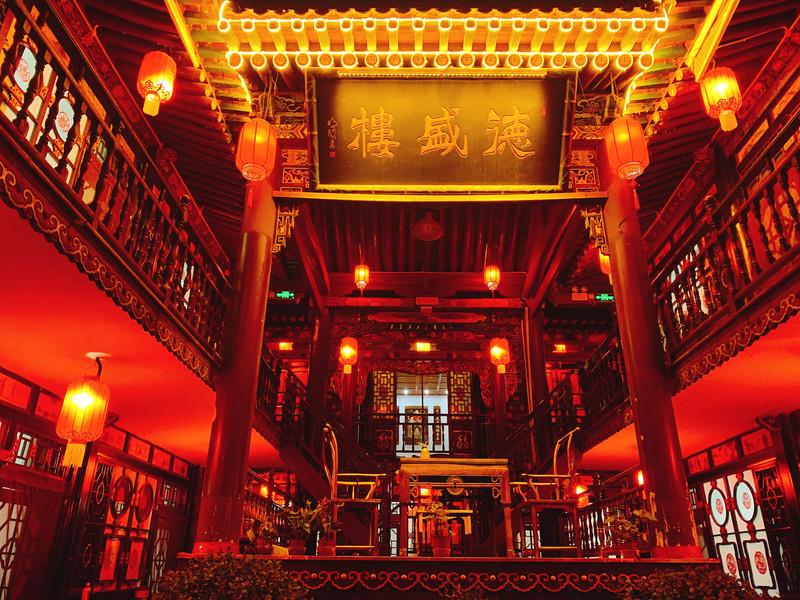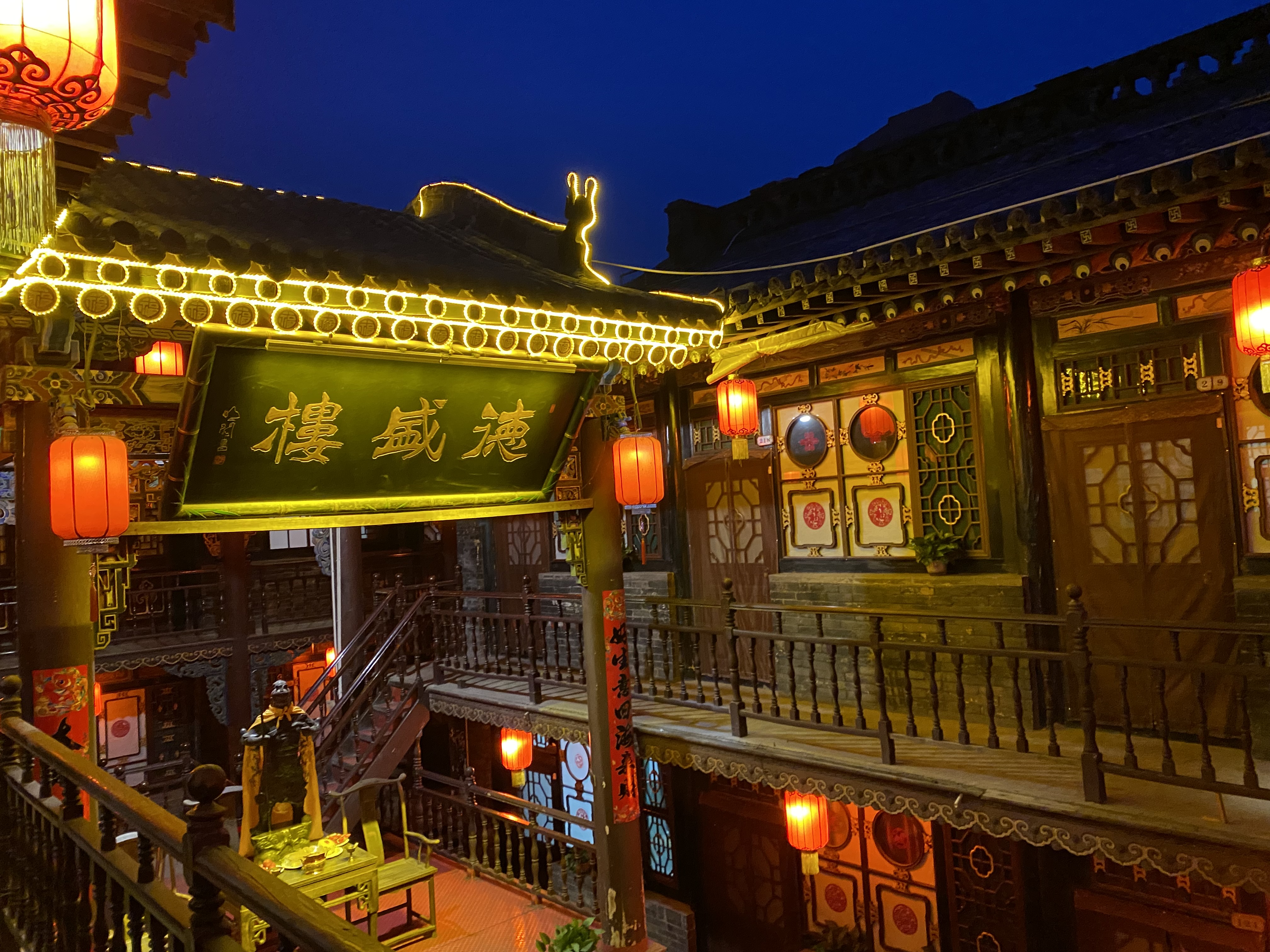 德盛楼客栈也是一家会议室酒店,客栈共有31件房,可以容纳80人。前面餐厅二层是一个古风式的会议厅。