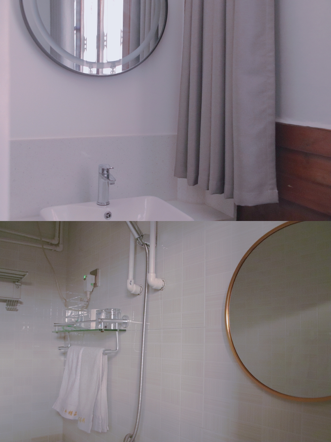 🔹 他们家还有一些那种类似于古代的那种龙凤床🛌,想要体验一下的可以来了解下。🔹 还有一点就是我好喜欢卫生间他们家的镜子,就我观察的几间来说,虽然都是圆的,但轮廓那些还是有一些区别,就很简约但是高级!
