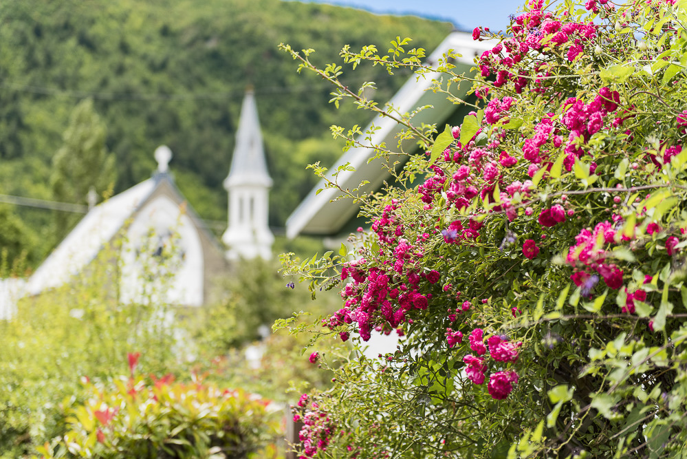 瓦尔特峰高原农场湖畔花园的上校之家( Colonel’s Homestead),工作人员挥手致意,欢迎游客的到来。