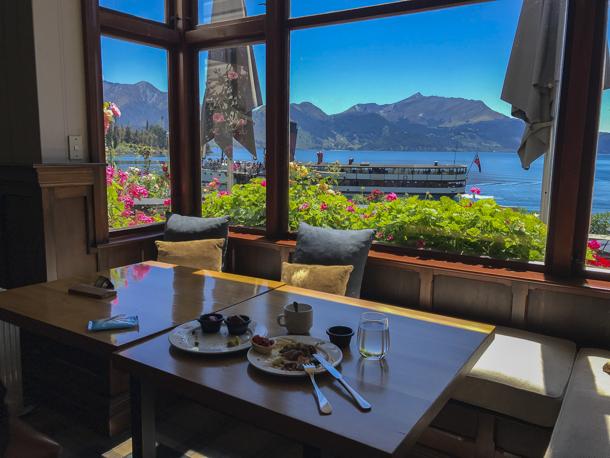 风格的BBQ,有:烤三文鱼,多汁的牛、羊、猪、鸡肉,能满足我们的 中国 胃,时令 沙拉 、烤蔬菜、硬皮面包则适合素食主义者。餐厅门口的湖滨花园栽满各式鲜花,随手一拍就很美丽。