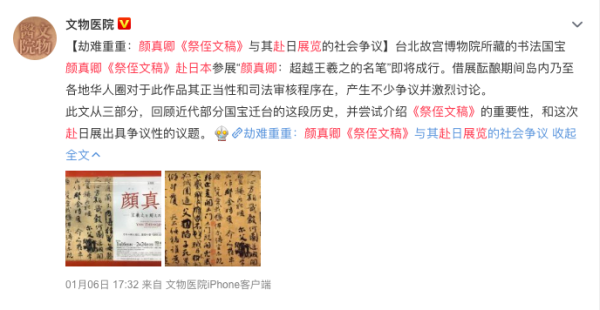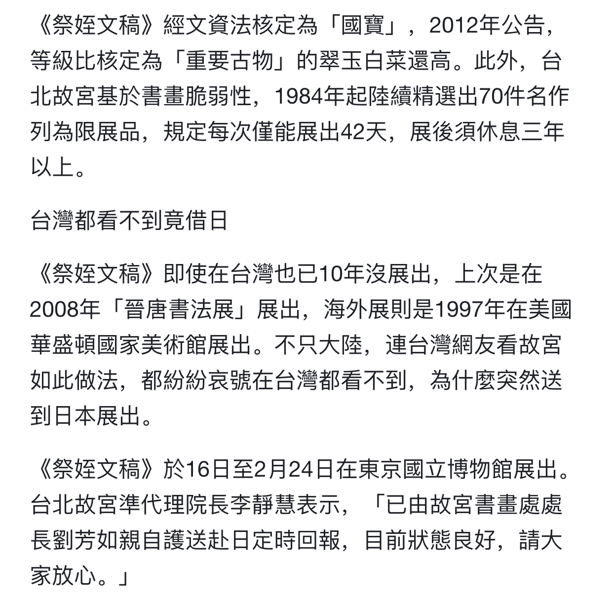 毕竟从艺术价值上来说,《祭侄文稿》是唐朝书法家颜真卿少量存世的真迹,后世誉为“在世颜书第一”、“天下行书第二” ,说它是“国宝”,真的一点没错!