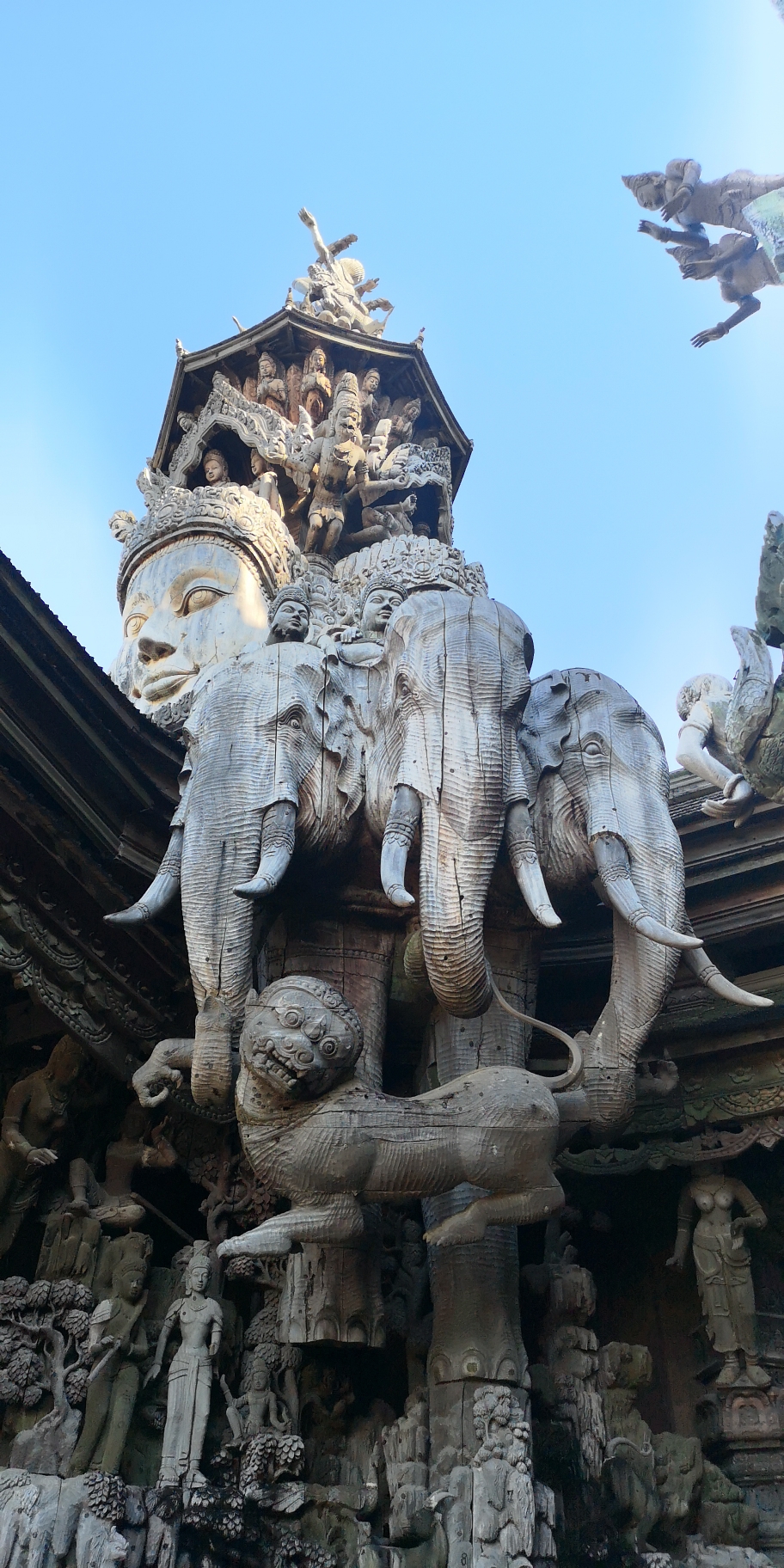 如果您到了芭堤雅还是可以去真理寺转转的,还是不错,真理寺在挨着海边建造,内部全部是以楔子和插销的方式,将这些结构聚拢起来照片拍不出那种震撼的感觉,只有您亲自去了才能感受的到,而且真理寺有中文讲解,讲解需要付一些小费,不是无常的讲解。但是很值得。中午11.30和下午的15.30都有表演,演出也不...显示全部