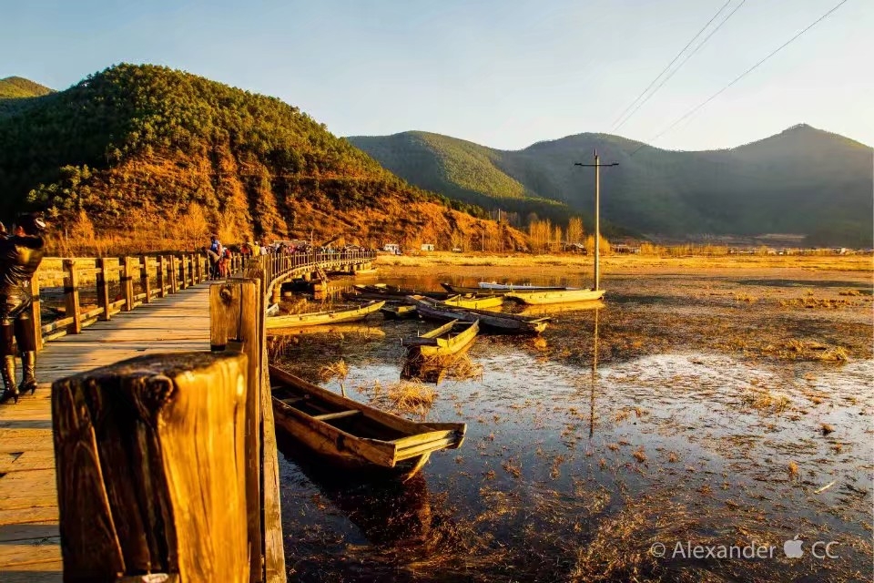 必去的打卡点,主要还是对于走婚的神秘向往,驱使人们去看看走婚桥到底是何种神奇圣地,已经泛旧的木桥架在草海之上,走完整段走婚桥,似乎就能了了一个心愿。