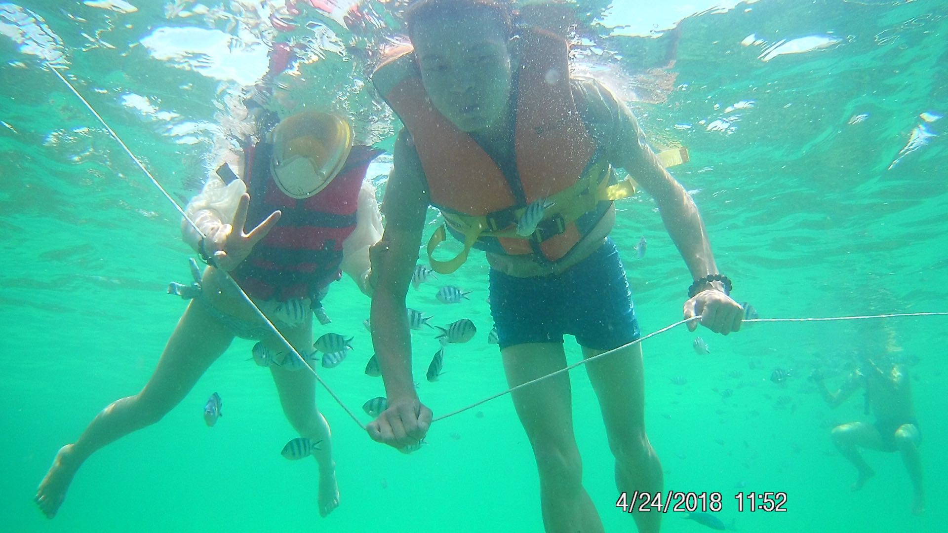 犹记得第一次潜水,咬着氧气管,耳边除了咕咕的水声以外,就感觉到胸口全身被水包围挤压着,没来由的恐慌,和感官马上要爆炸的感觉,是cody握住我的手,用着学来的手势在水下鼓励我,给我镇定的力量