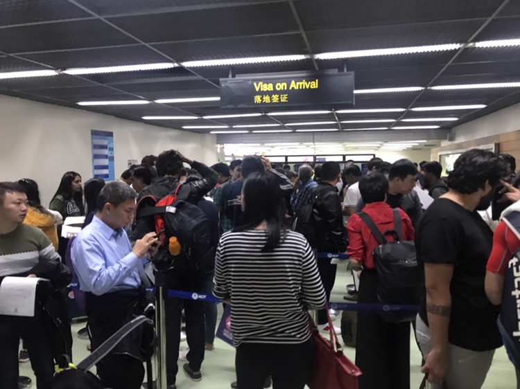 说完出入境卡,再来说说落地签申请表。这个表是要到办理落地签的柜台才可以领取的,在飞机上可不会发给你。下了飞机后,你可以跟着Visa on Arrival的指示走,还没到入境盖章的地方,就会看到办理落地签的柜台Visa on Arrival,这时候就可以跟工作人员拿申请表啦。