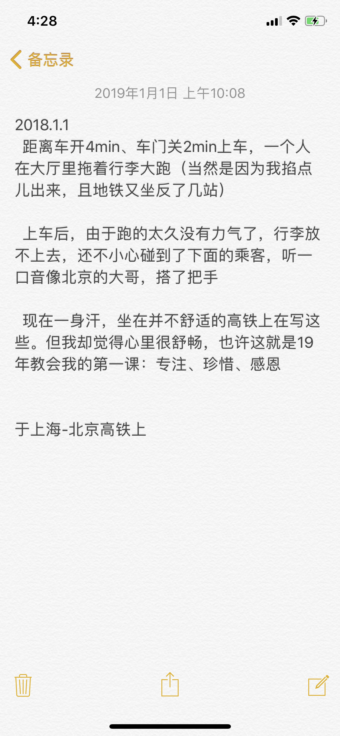 有一次去苏州,正好赶上北京南站的一次调图,把几趟去上海的动车弄到北京站去了,我到了南站看到显示屏才发现,还有40多分钟发车,赶紧地铁赶到北京站,到了站内天桥看到自己的车出站,果断决定乘坐7分钟后发出的当晚最后一趟动车,和站台小姑娘协商车上补票!勉强放行,上车后发现根本没人检票,找到一节卧铺车厢...显示全部
