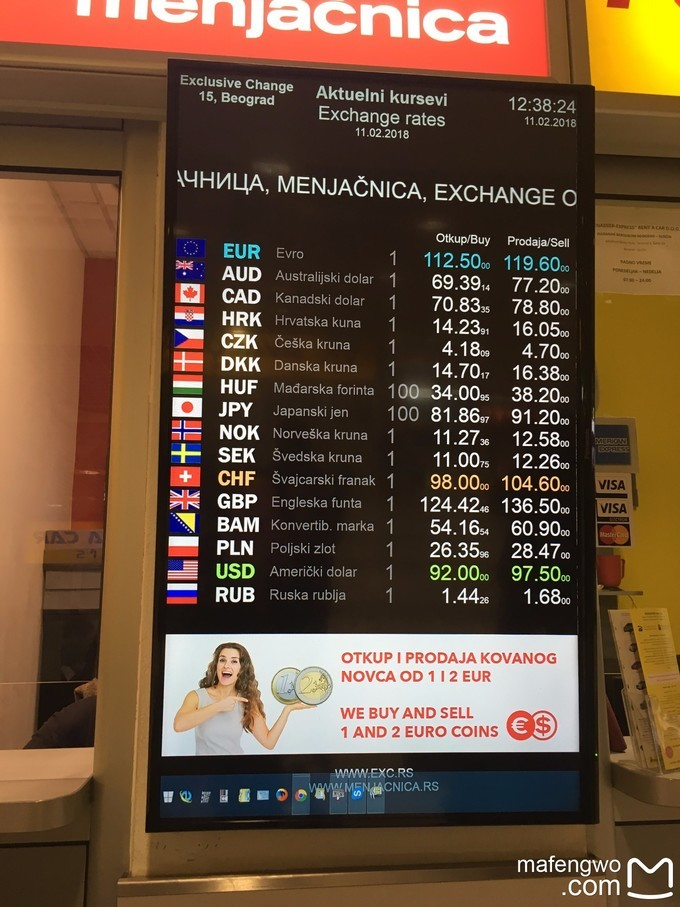 差不多也是 而且兑换点也多 不用说话 一手给欧元 一手给第纳尔和凭条 so easy有没有 兑换点儿的标志是个M打头的一串很长的单词 不过你只要看见LED灯闪烁的118 117之类的数字差不多就是兑换点儿了 或者你ATM机玩的遛也可以换 只不过有时候ATM机没钱 至于欧元和软妹币的汇率你可以去银行柜面问 反正也是银行卖出价为准 hope it helps you out