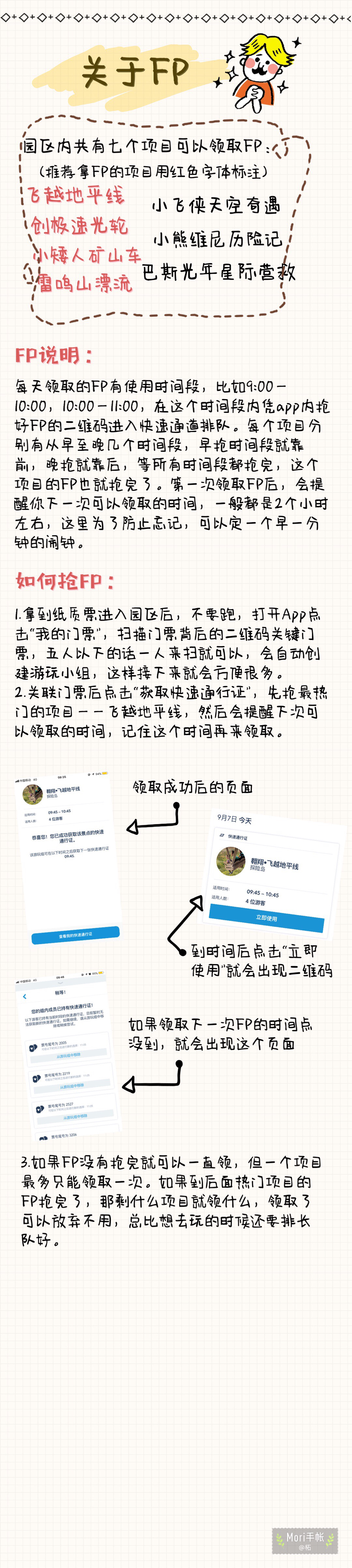 首选,门票一定要提前买,飞猪、携程、大众点评多查一下比对一下,价格略有不同。有时间买两日票,没时间一日也是可以玩得很精彩的。然后,一定要下载官方app,提前几天开始关注各个项目的排队时间热门情况,最重要的是了解自己喜欢哪个,哪个是一定要去的,这样到时候就知道自己要抢哪个FP了。早上一定要比开门...显示全部