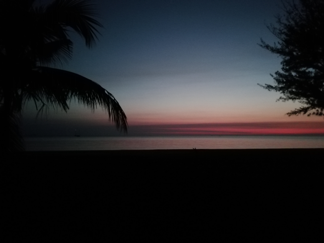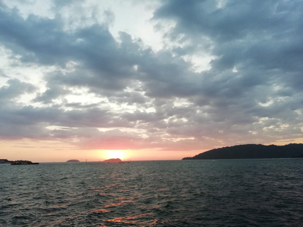 日落后,人也全都散去了,我们还舍不得走,就拍到了这样的景色。已经很美丽?可是,我觉得红树林湿地保护区的日落更美哦。放图。