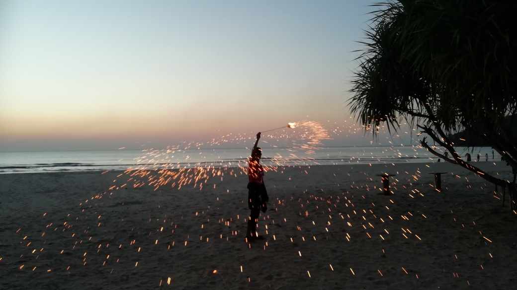 放烟火的孩子和日落配得真美。