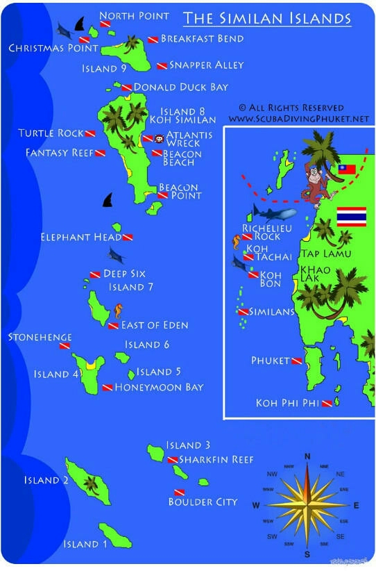 MQ1计划航线:斯米兰群岛 - 邦岛 - 达差岛 - 黎塞留岩 - Boon Sung 号沉船。
