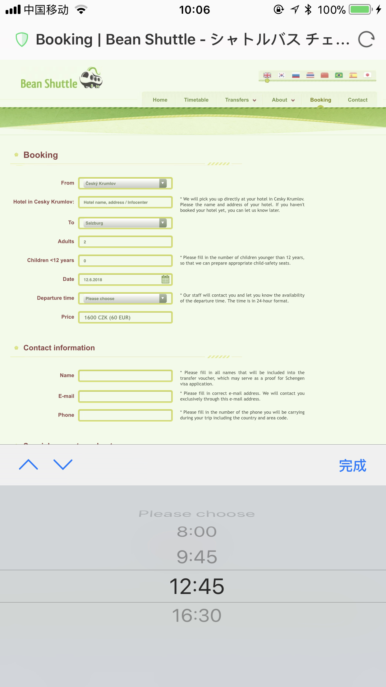 的CK小镇预约的穿梭巴士前往奥地利的萨尔茨堡的,可以在网上预定,穿梭巴士的预定网址:*** 打开网页后里面是有中文选项的,另外要注意的就是穿梭巴士是可以点对点接送的(DOOR TO DOOR),所以在预定界面上要注明你上下车的地址。从CK到萨尔茨堡大概是三小时的车程。最好是提前点时间约定,特别是旅游旺季的时候,很容易你想要的班次会回复已经满员了,我当时提前了一个月预定的,还是没订到我想要的班次。预定界面我截图你看对你是否有帮助,你也可以进我的游记,里面我也写了穿梭巴士的相关内容,希望对你有帮助。 ==========