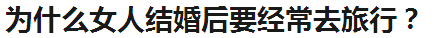 (原名:结婚后经常去旅行有多重要?)