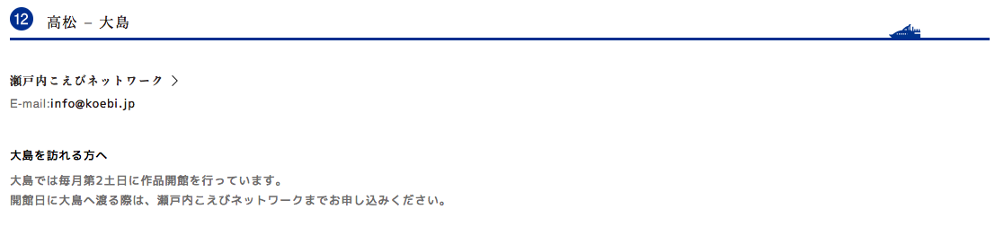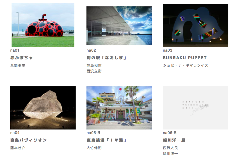 艺术祭举办地遍布濑户内,从之前的几个主要岛屿扩展到现在的12岛、2个港口,由固定班次的渡轮连接。