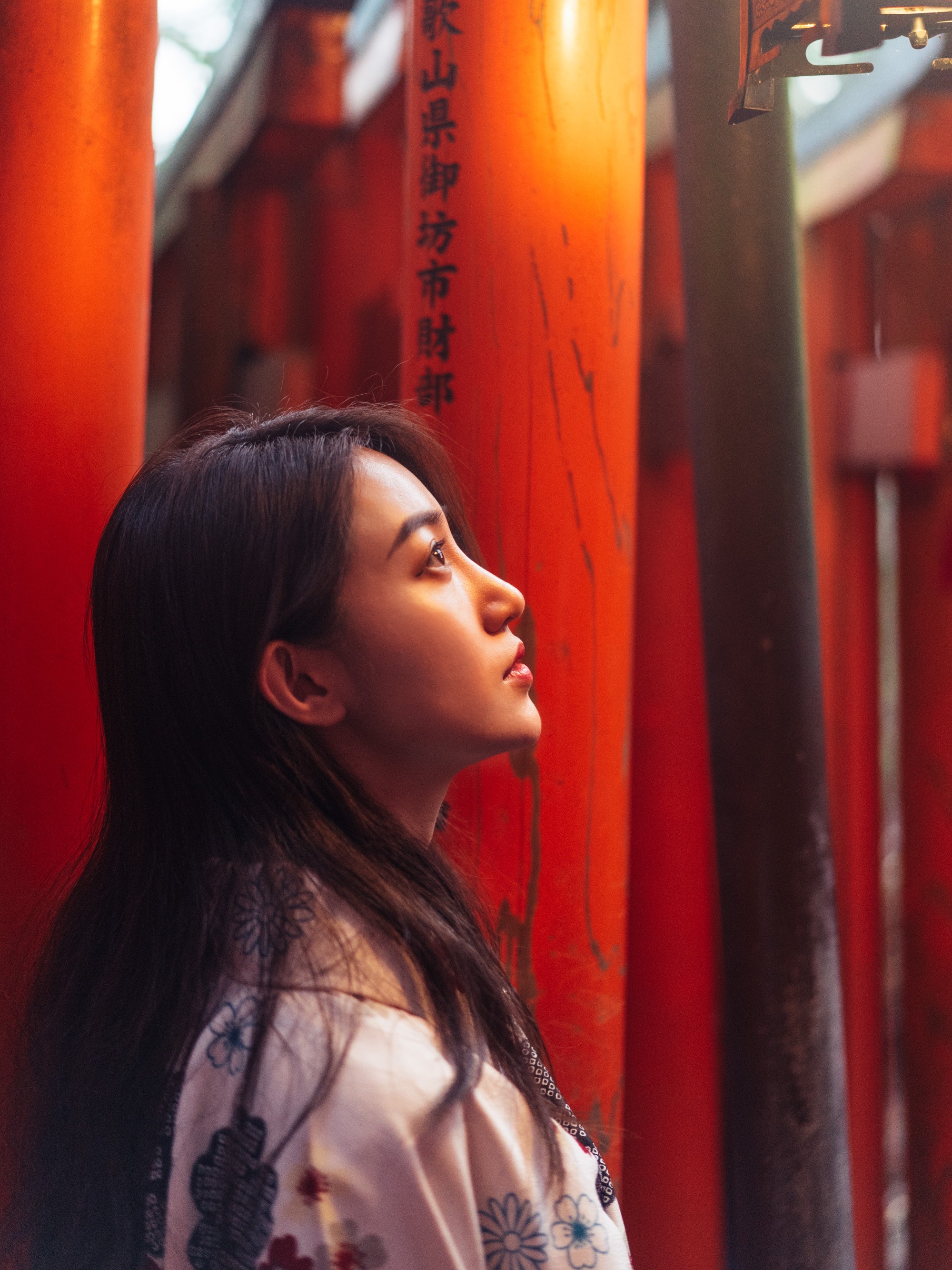 穿着和服进行拍摄不太适合摆过于夸张的pose,应该着重提现和服的古典,优雅,可以拍摄缓缓步行时的背影,回眸,或侧颜,都可以提现优雅感,步态一定要不紧不慢。