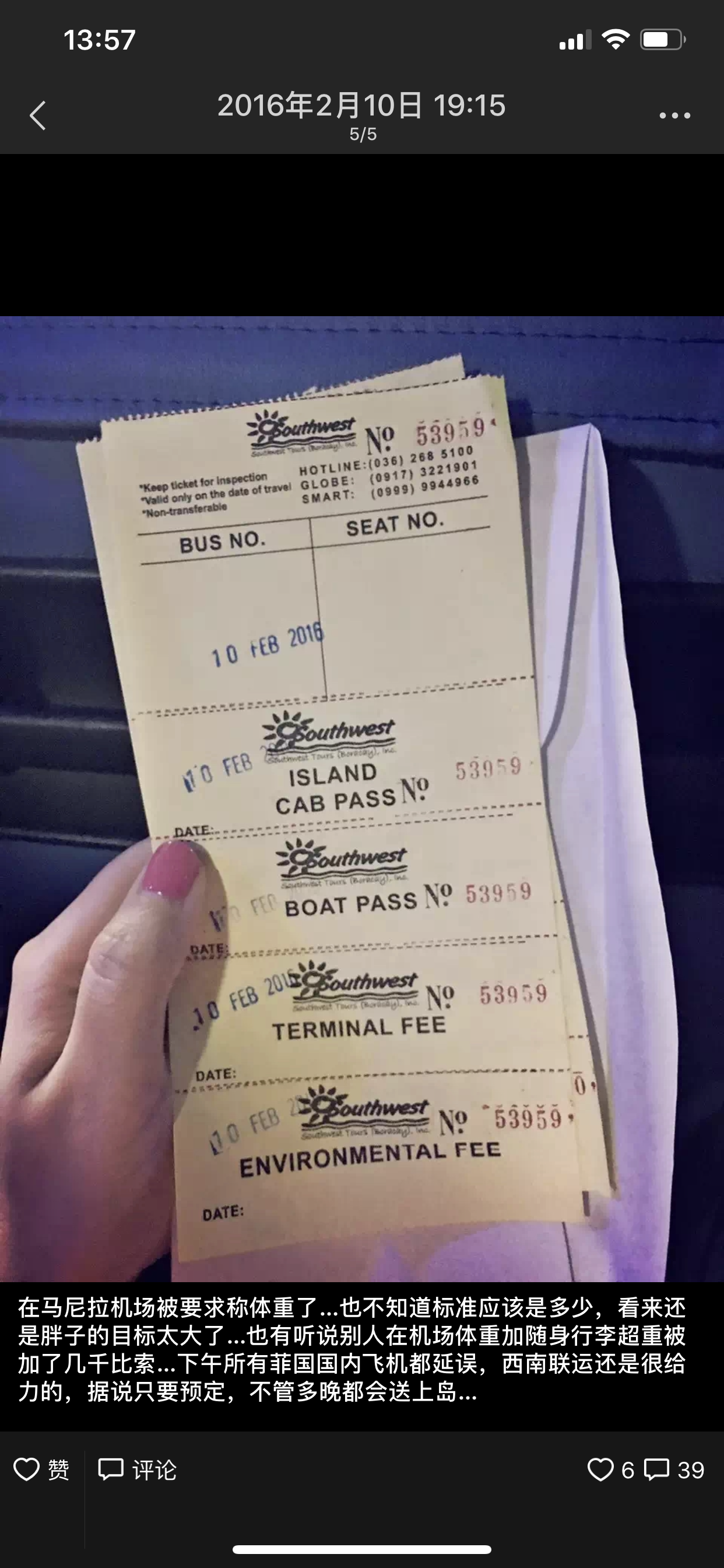 我也很好奇为什么不接机,为什么不走淘宝呢?我记得我16年春节去的时候,就是定的SOUTHWEST西南联运家的往返接送机包括车船联运的,只要预定了,就算晚点也会送上岛送到酒店的。而且西南家做了很多年了,是比较靠谱的车船联运。那时候淘宝上找的西南联运,预定号有个预订单打印出来,卡利博机场出来之后找...显示全部