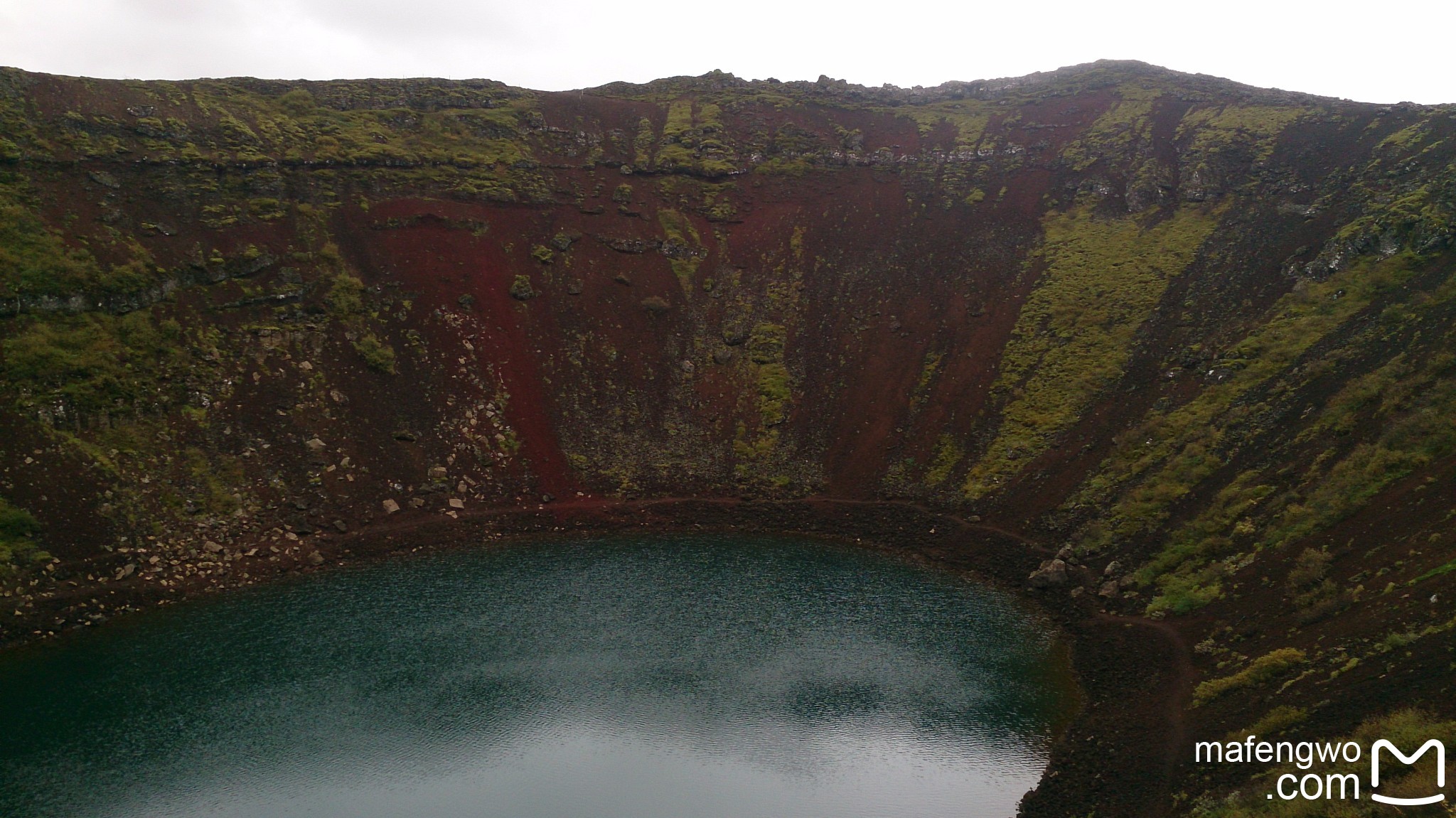 完美的圆锥体 红色土壤 绿色湖水
