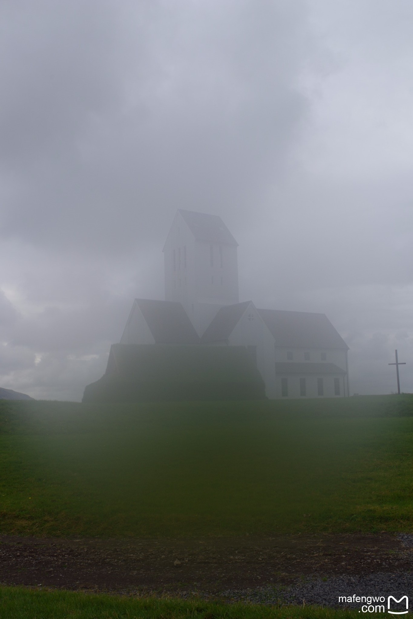 35号公路 雾气迷茫中的白色教堂和十字架 有没有点安哲《雾中风景》的味道?