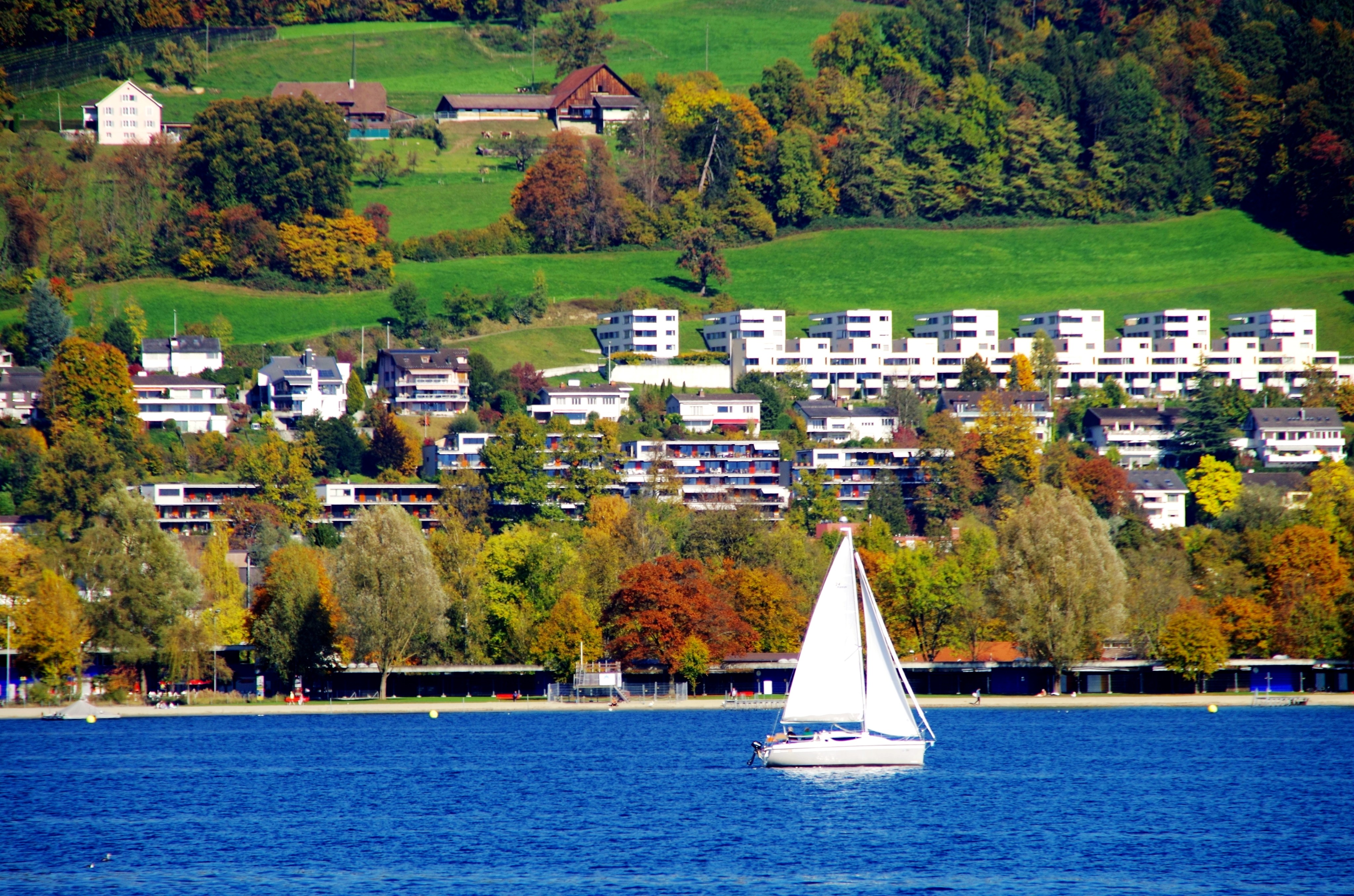 的工商、金融业和文化中心,却没有车水马龙的喧嚣和人声鼎沸的街道,利马特河穿城而过、湖边荡漾的微风,远处的翠绿森林和小径上踱步的