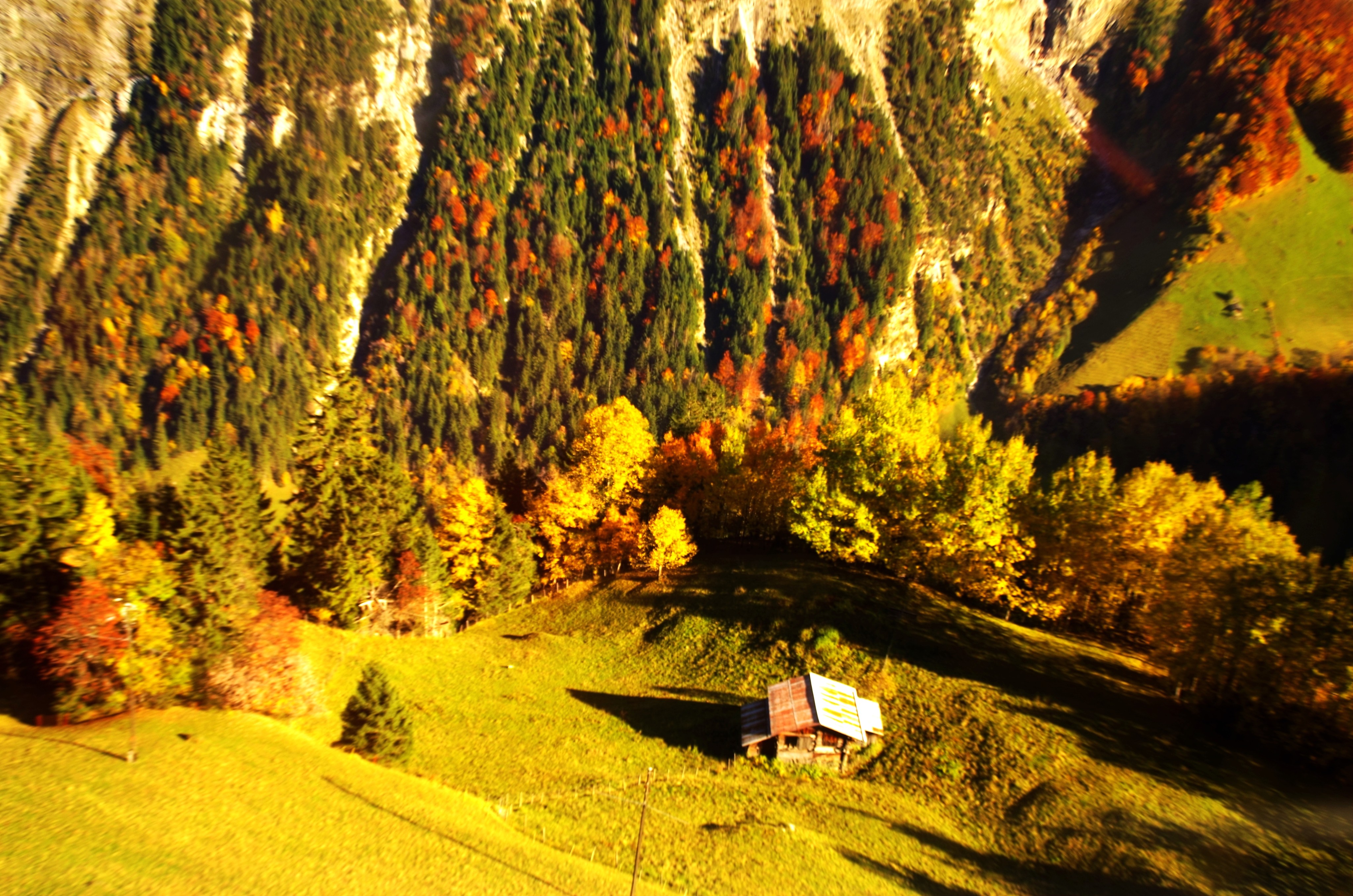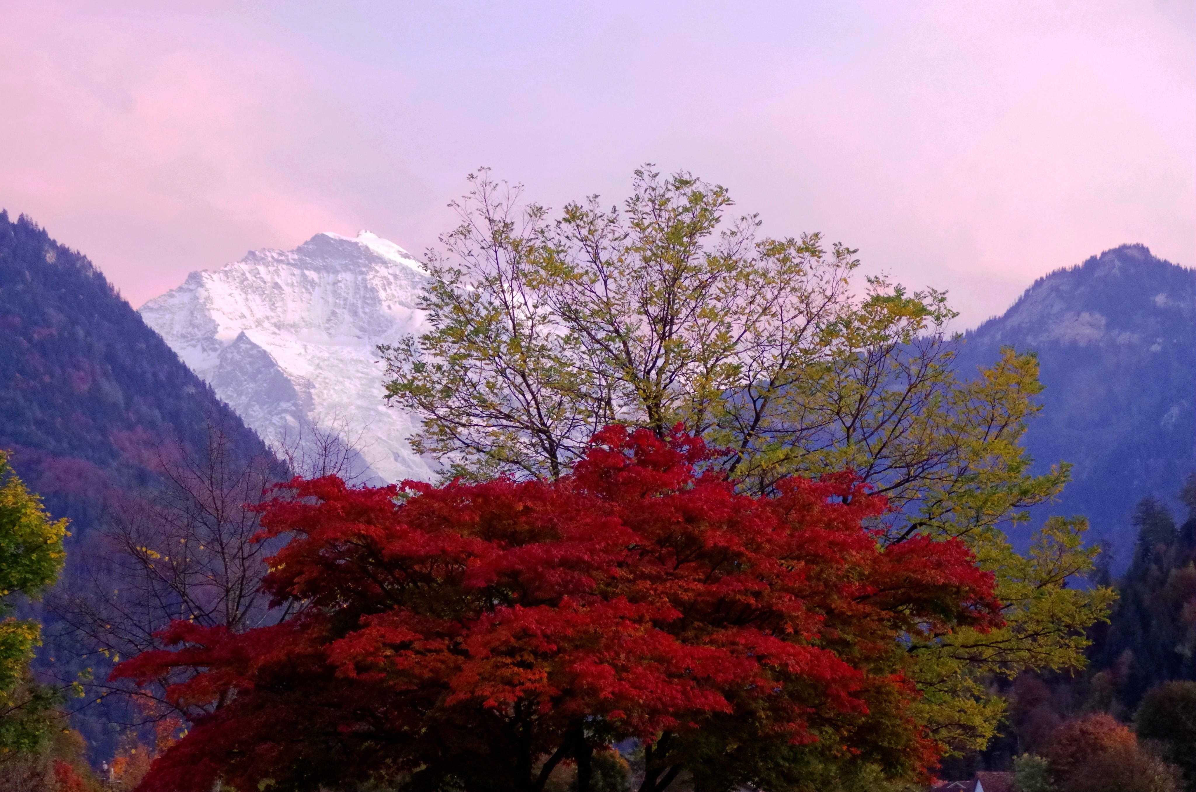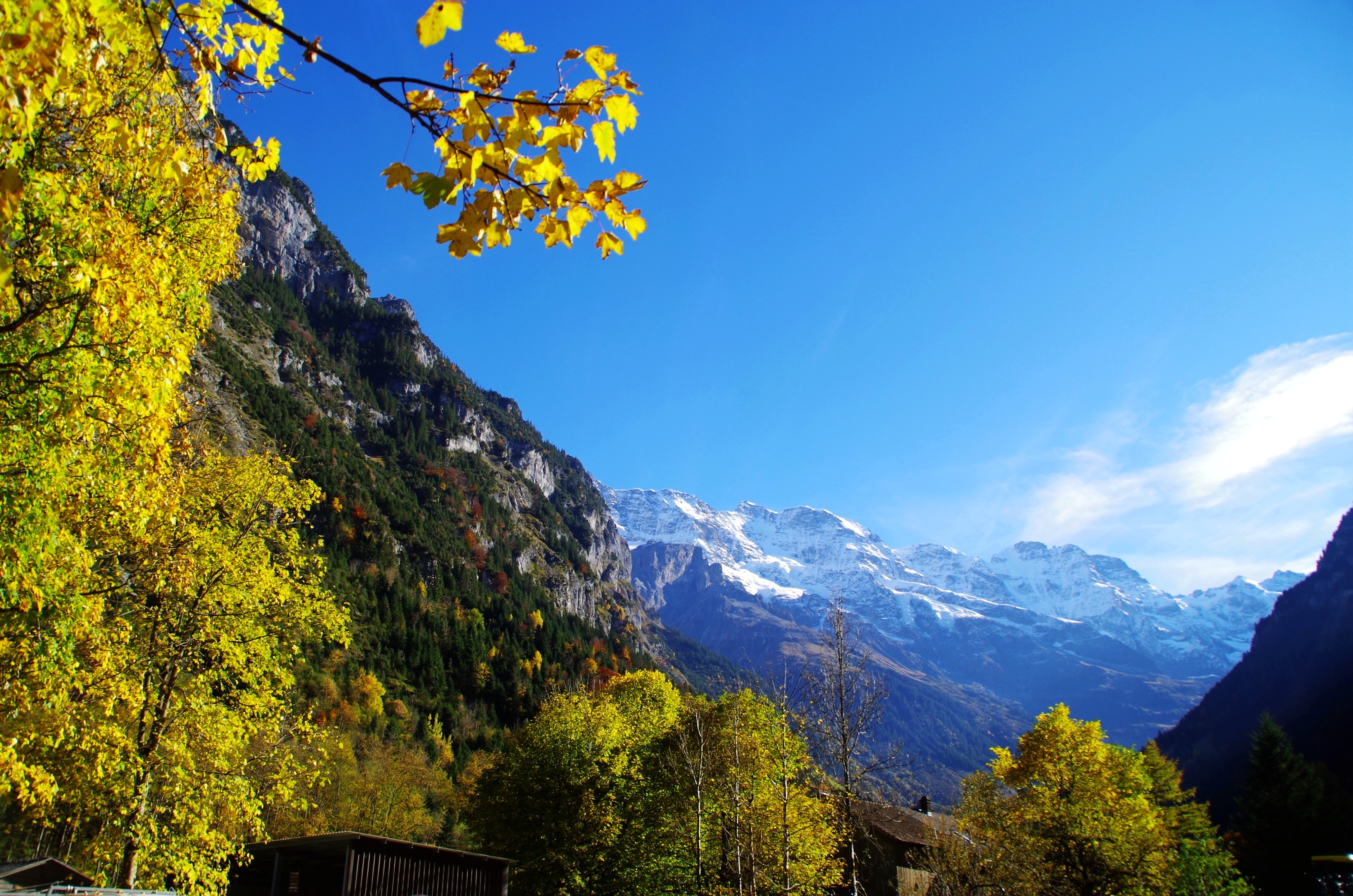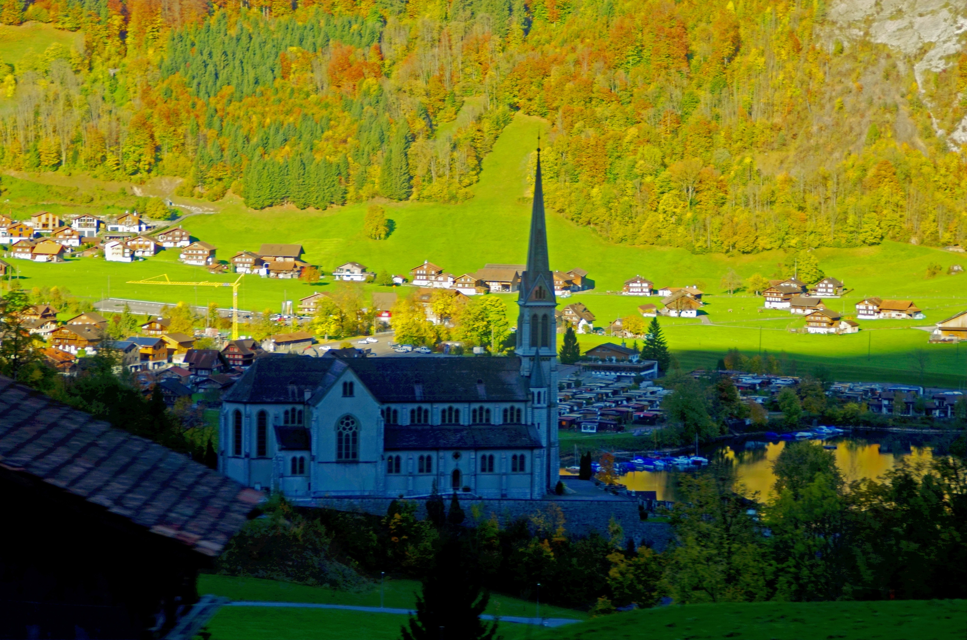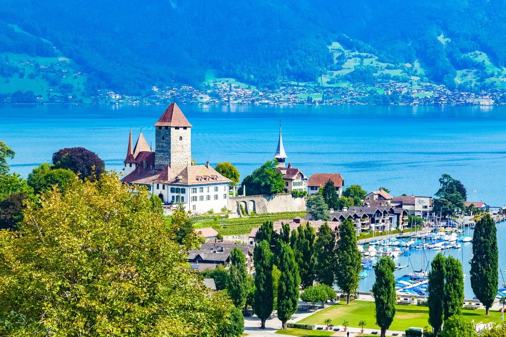 Interlaken ,也被称为金色山口线, 这段路75公里,特别开设了金色山口快车(Luzren-Interlaken Express),共2小时车程。乘坐金色山口列车浏览绝美湖光山色,一幅雪山、湖泊、森林和平原的长长画卷在眼前缓缓展开。雪山下优美宁静的小镇,微风拂过湖面悠然荡起涟漪,一副岁月静好的模样。