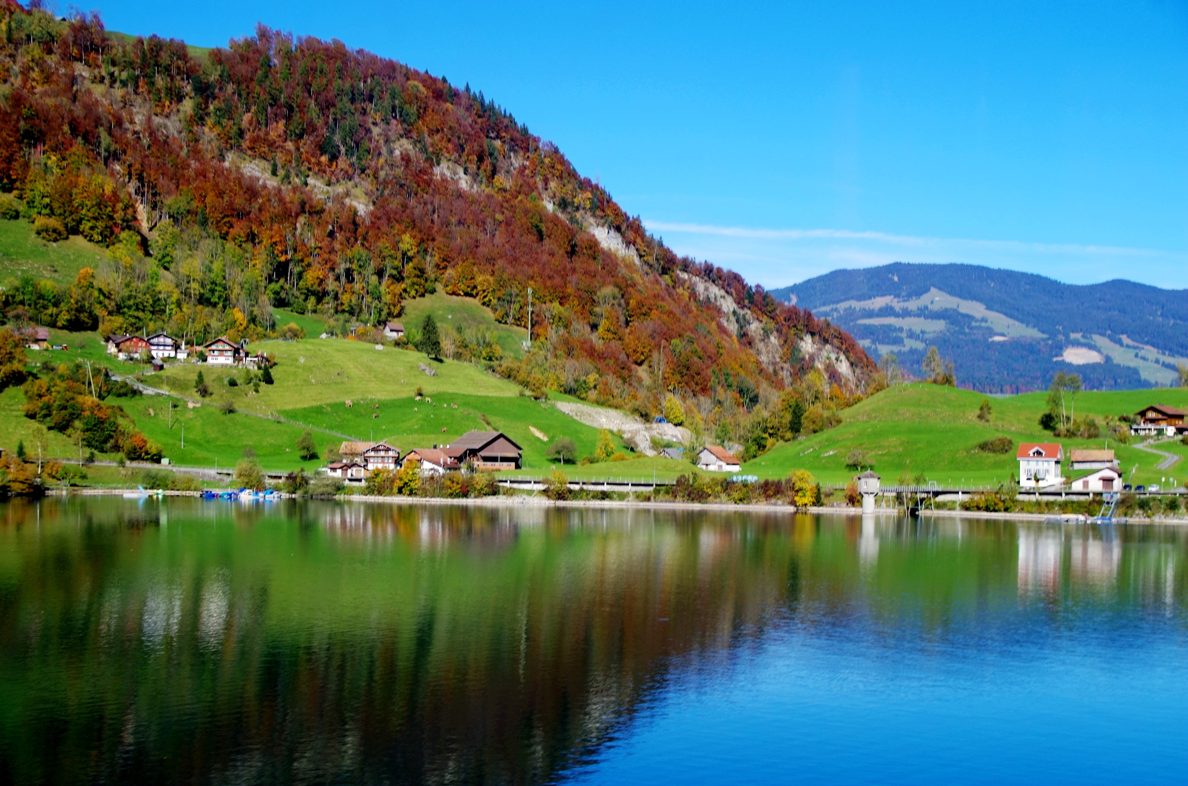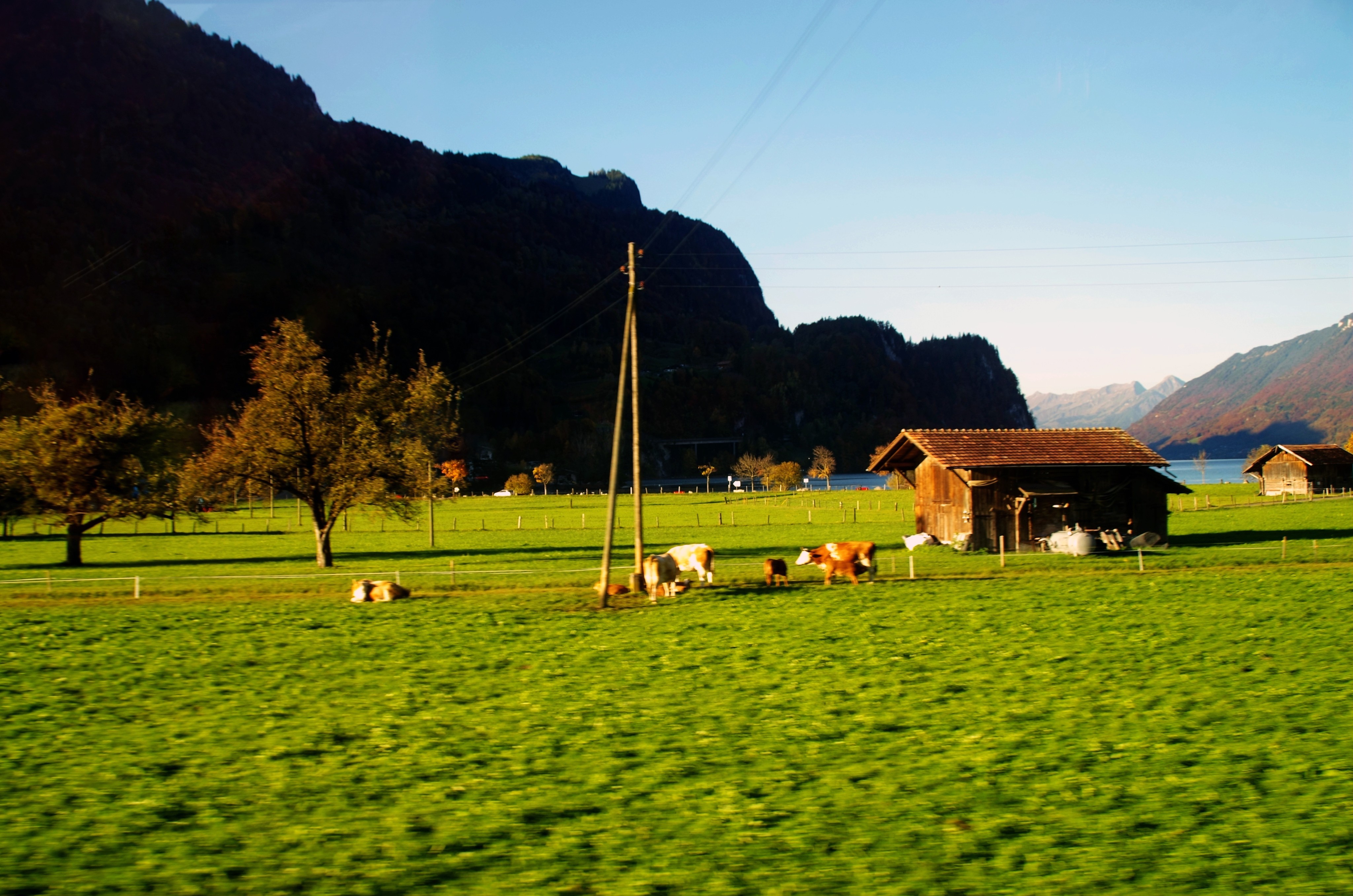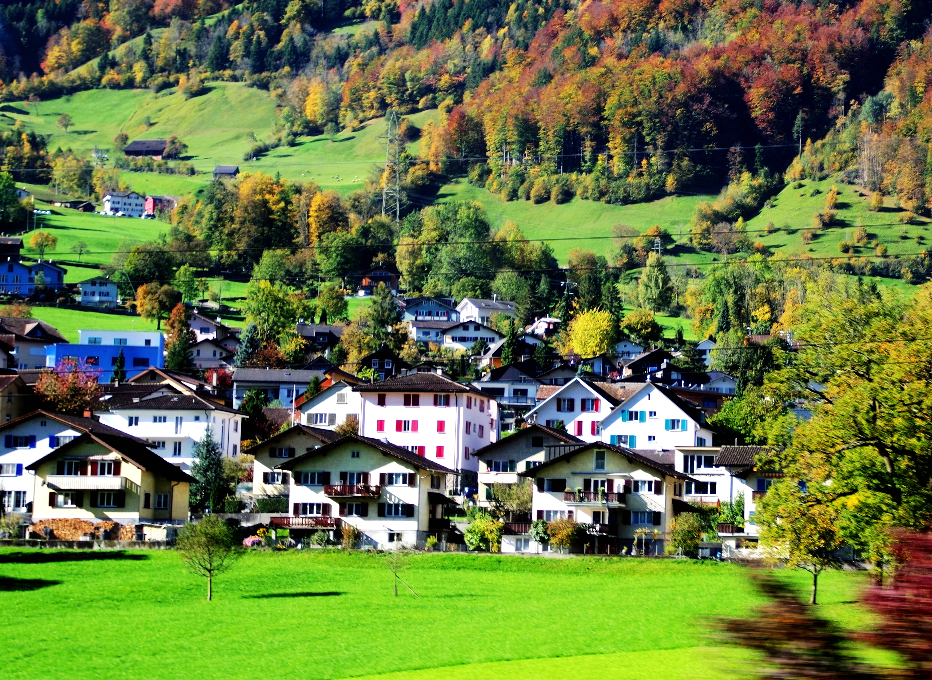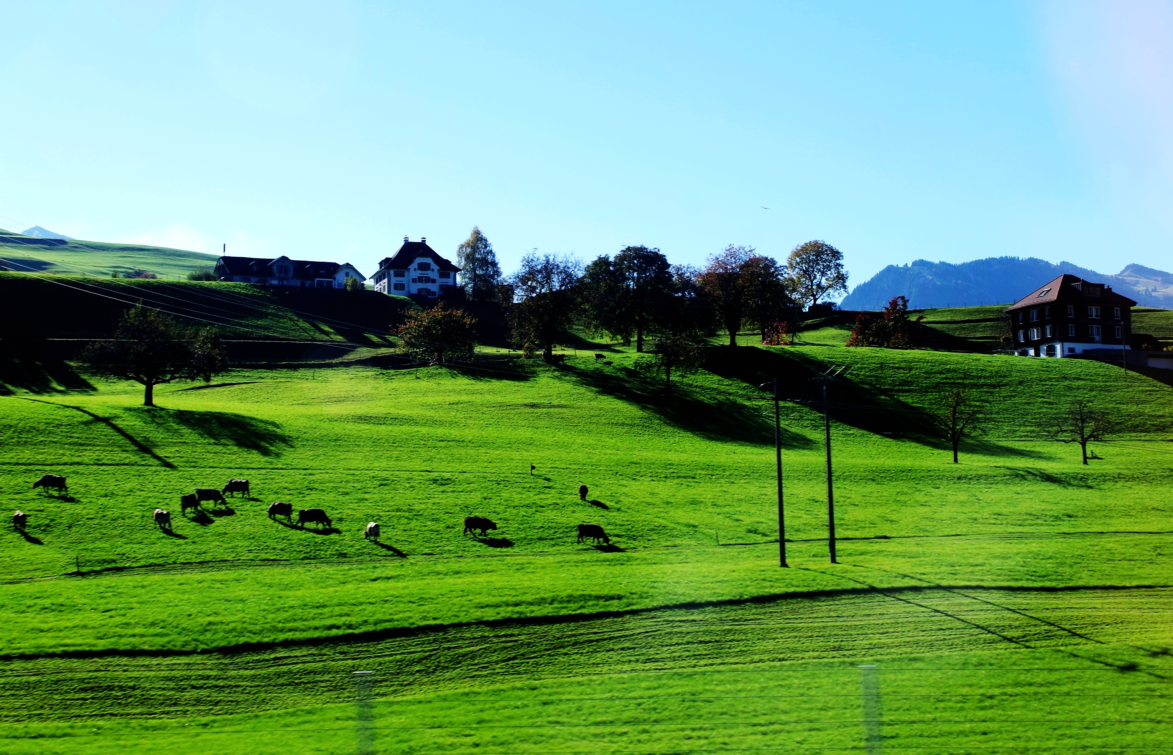 有很多美丽的小村庄,风景如画的木屋窗户上放着红色的天竺葵,而在绿色的草地上放牧着奶牛。它们是如此宁静,如此典型,你能听到的声音就是鸟鸣和牛铃。