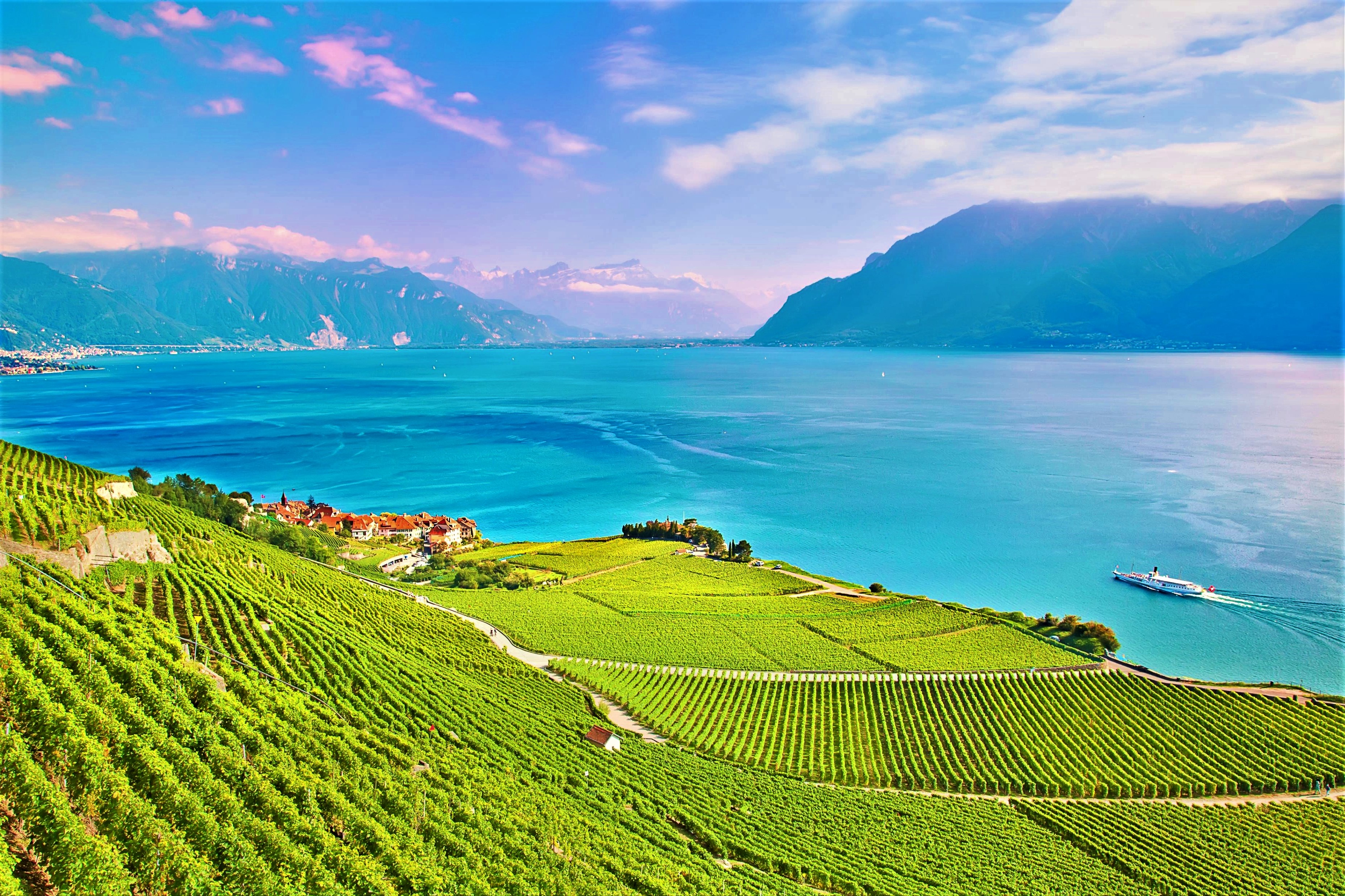 。明丽的湖水,雄伟的阿尔卑斯山,悠闲的牧场,美丽的葡萄园——您可以尽情享受多彩的风景。风景最好的一段当属