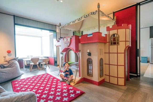 新加坡香格里拉酒店的「亲子套房」设计特别逗,墙上有个洞可以让小朋友从大人房间钻到宝宝房间
