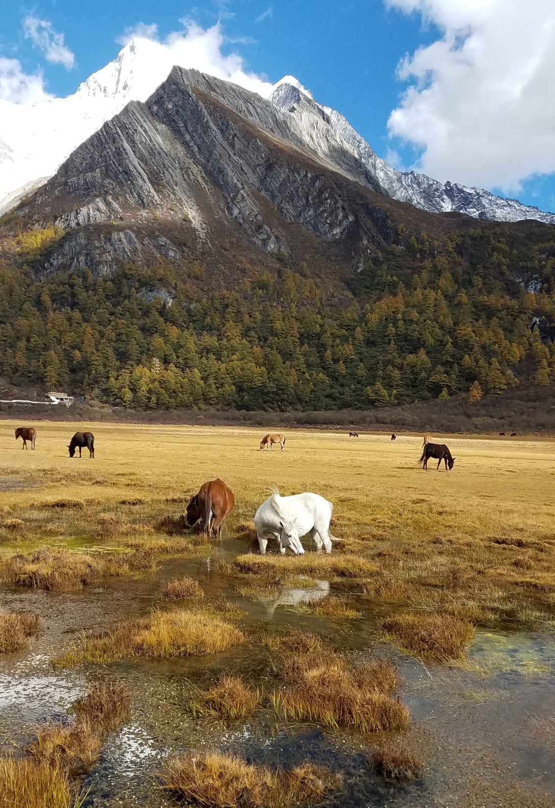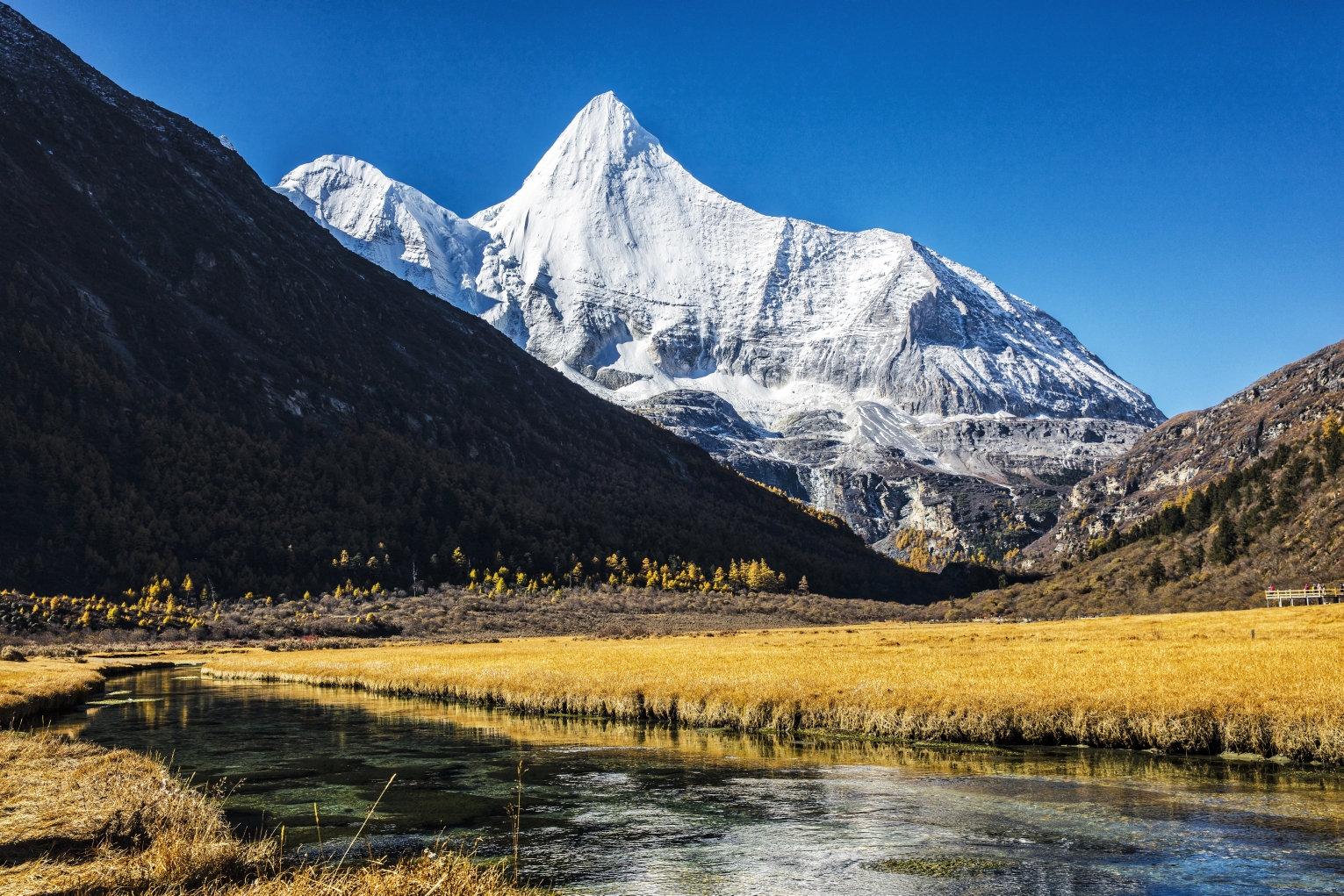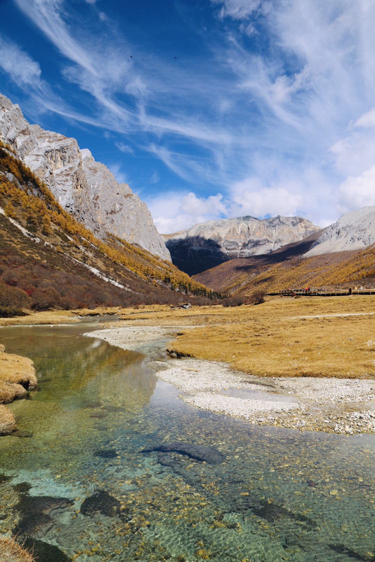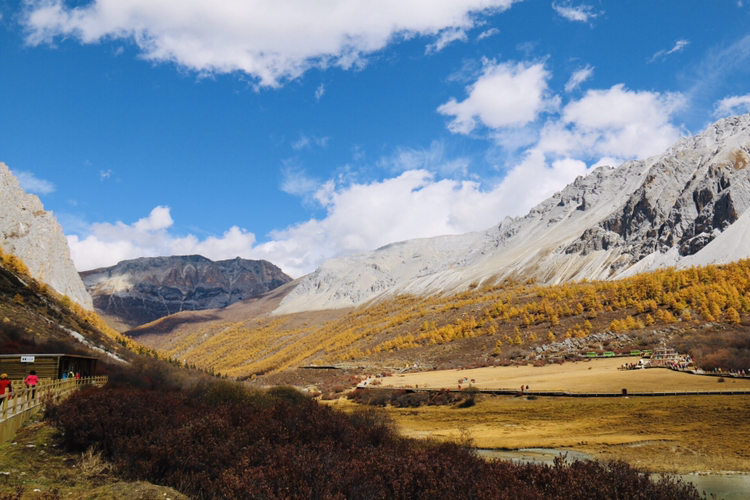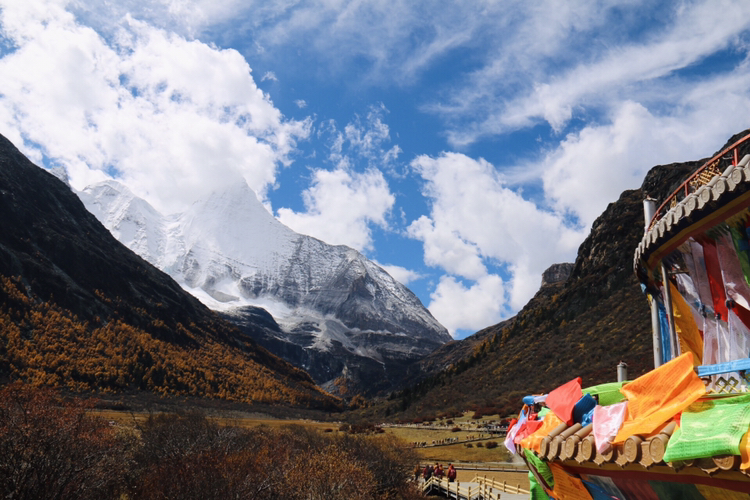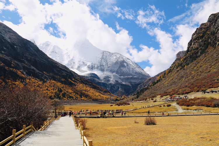 9-10月,此时的红草地与黄色的万亩杨林让稻城变成了色彩的海洋,雪山在蓝天白云的村托下,更加显得如梦如幻。另外4-5月也是去稻城的好时候,沿途都是漫山遍野的鲜花,神山在这个季节显得更加壮观和明朗。