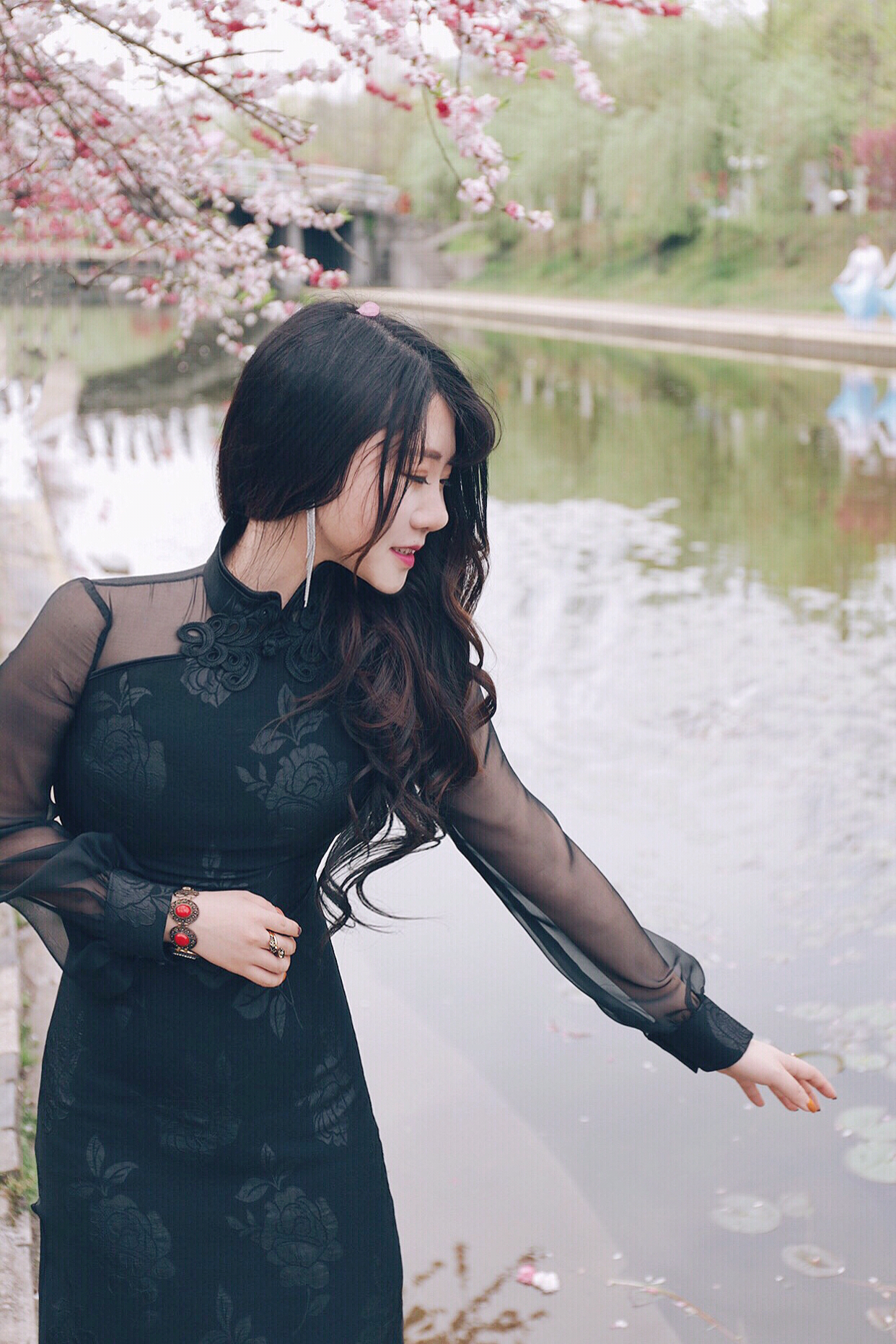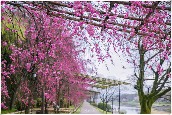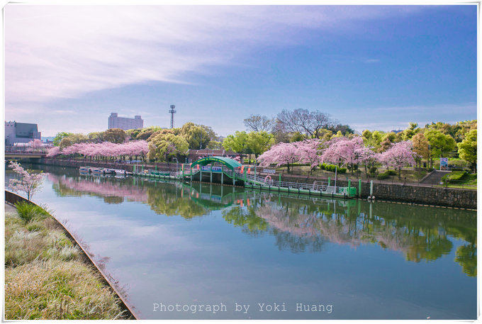 在河边种满樱花是公园内很常见的美景,试着站在河对岸吧,平静的镜面能给你双重的美丽。