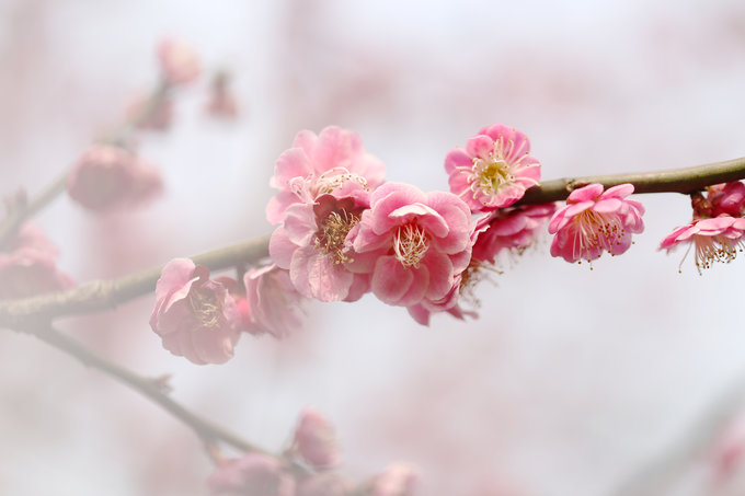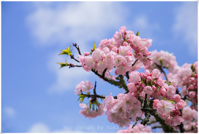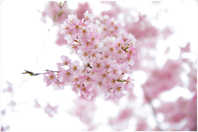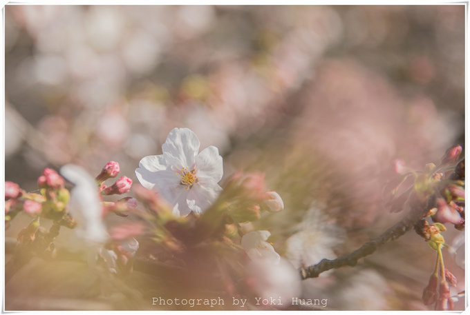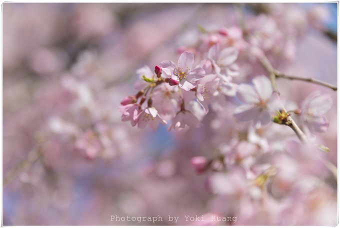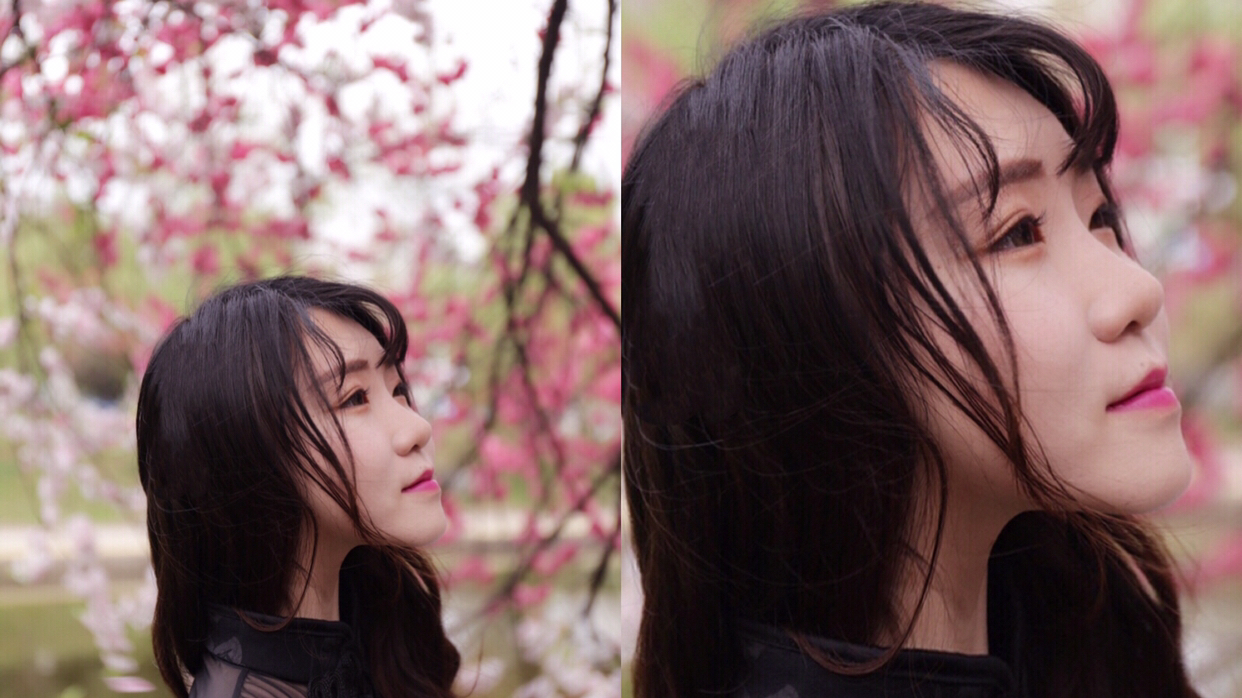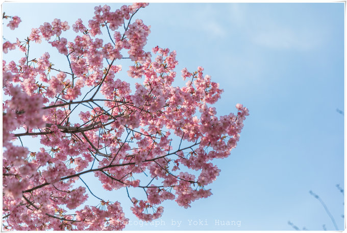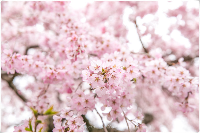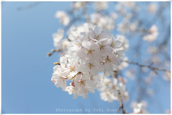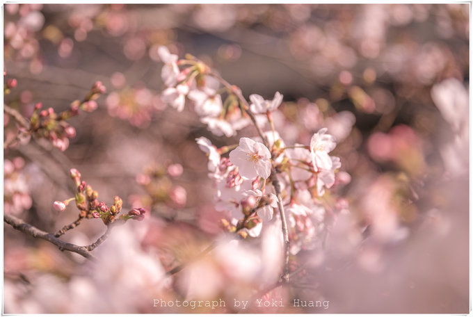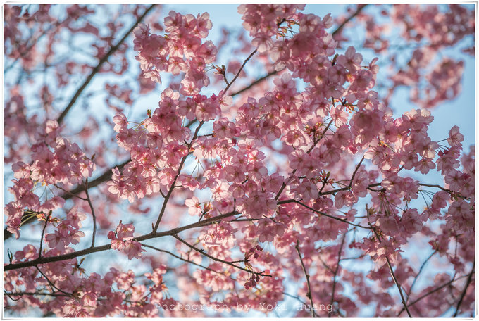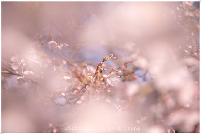 这张照片是我相机朝上,对着头顶的樱花拍的的,在多云的天色下,直射光线有,但是不强烈。光线反而透过了薄如蝉翼的花瓣,让我能看到鲜花的纹理和轻薄的质感。