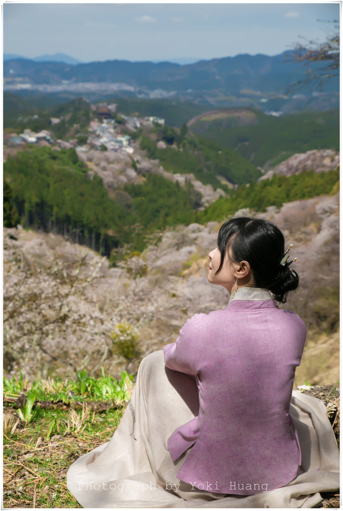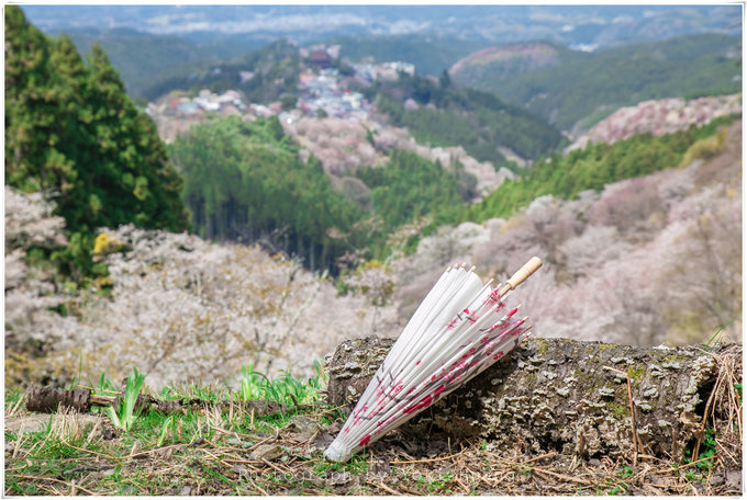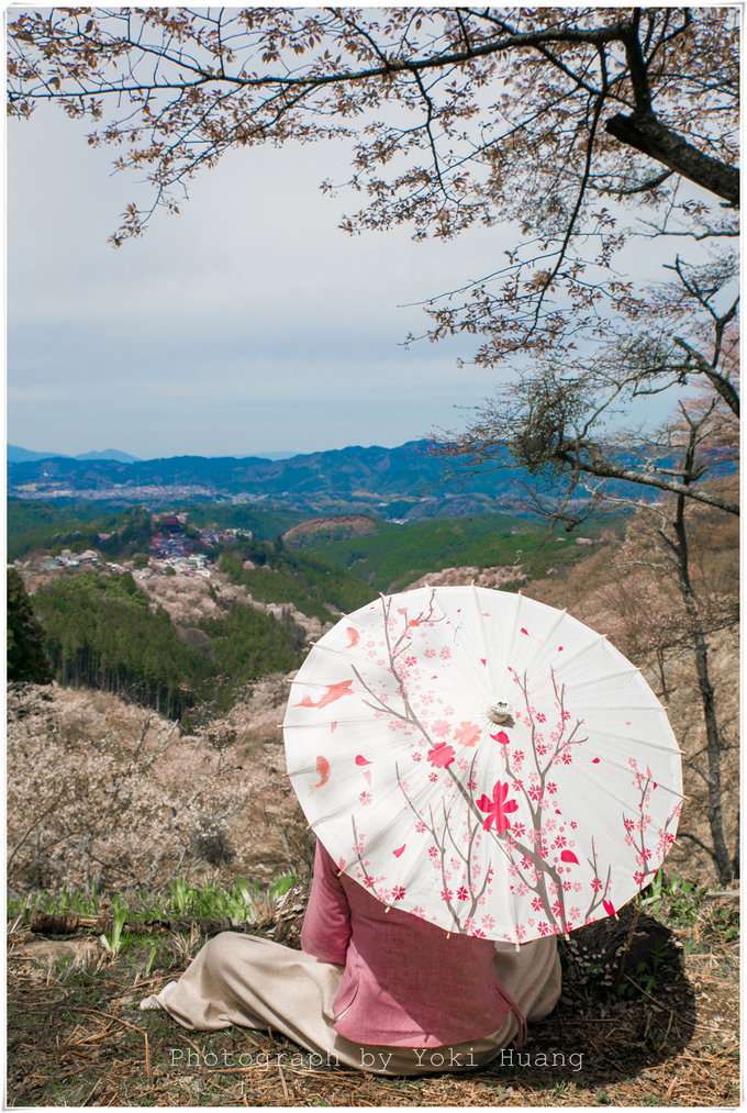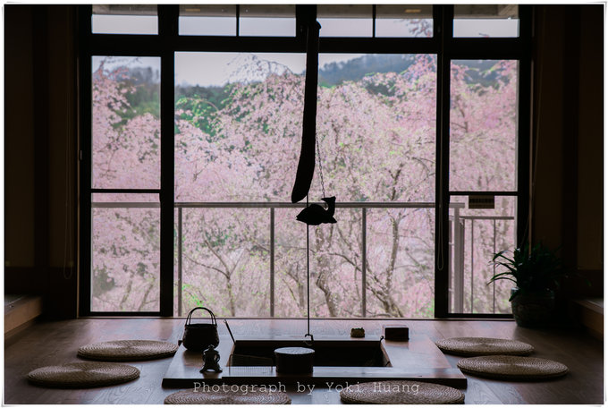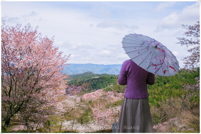 这是我在吉野山吃午餐时,看到满上遍野的樱花占满了窗外,这是一扇被樱花攻陷的窗户啊。