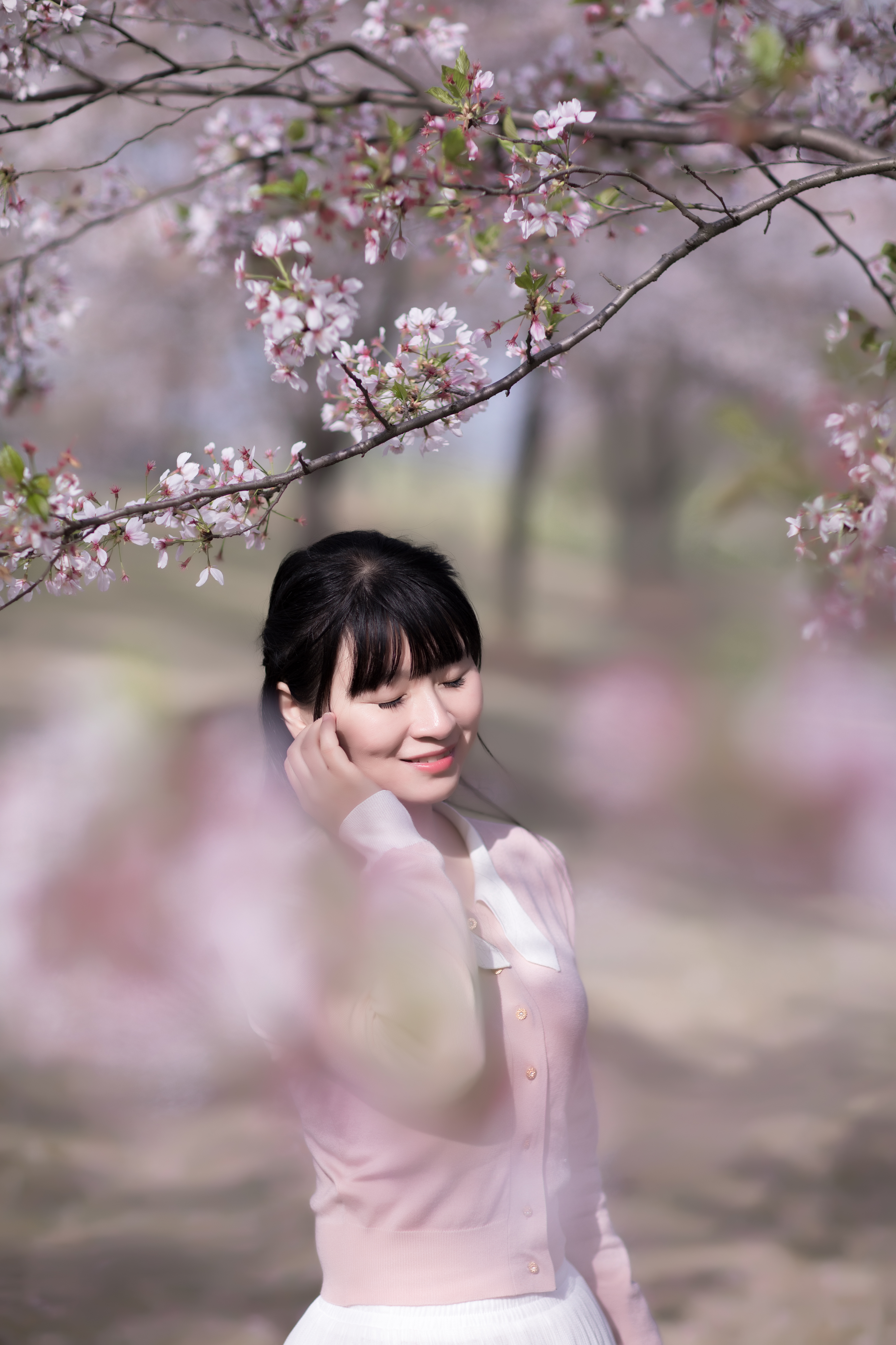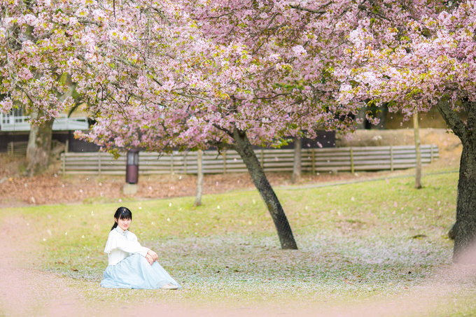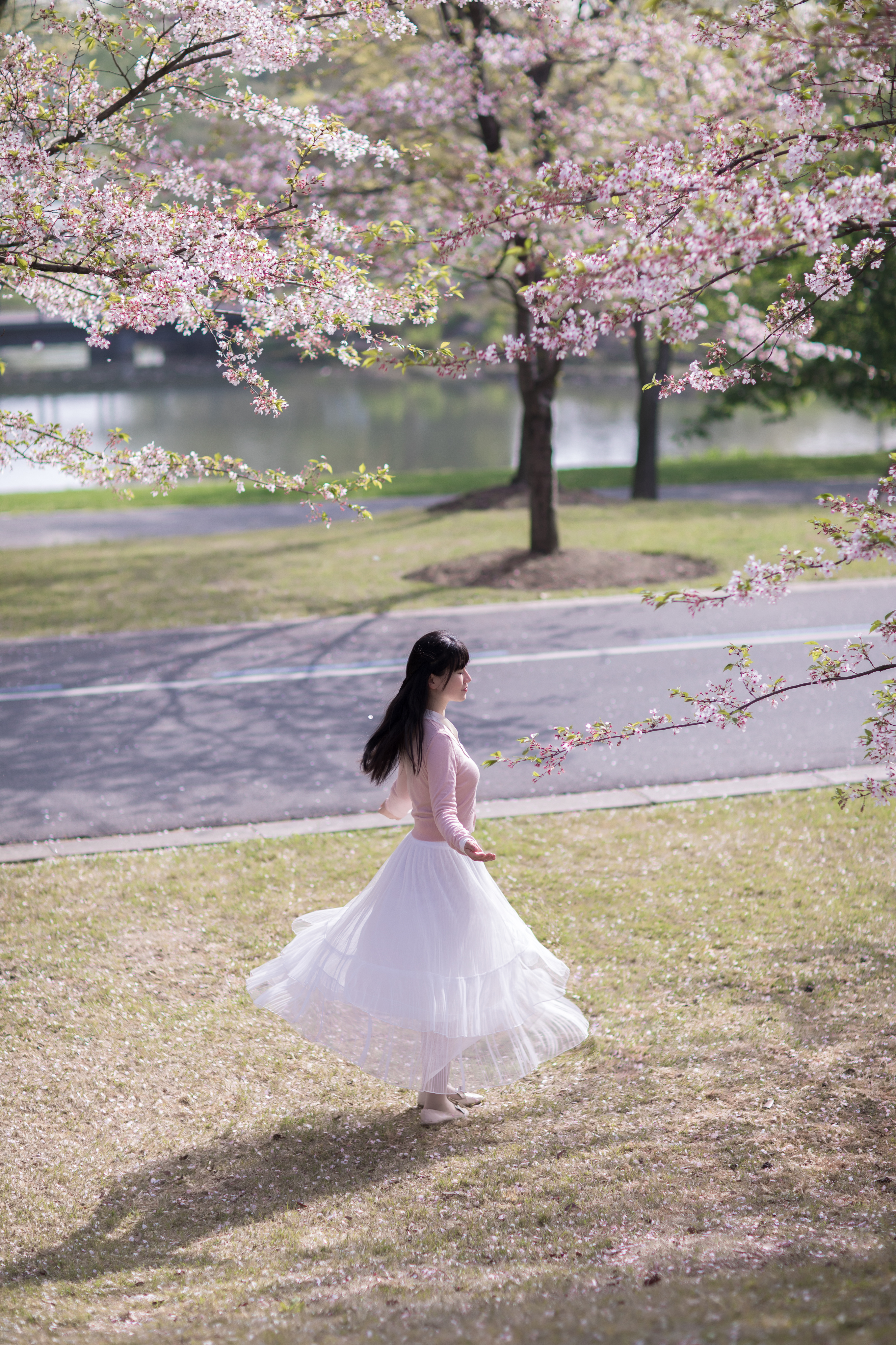 落英缤纷时,用相机的高速快门捕捉在花树下转圈的瞬间也非常美好。