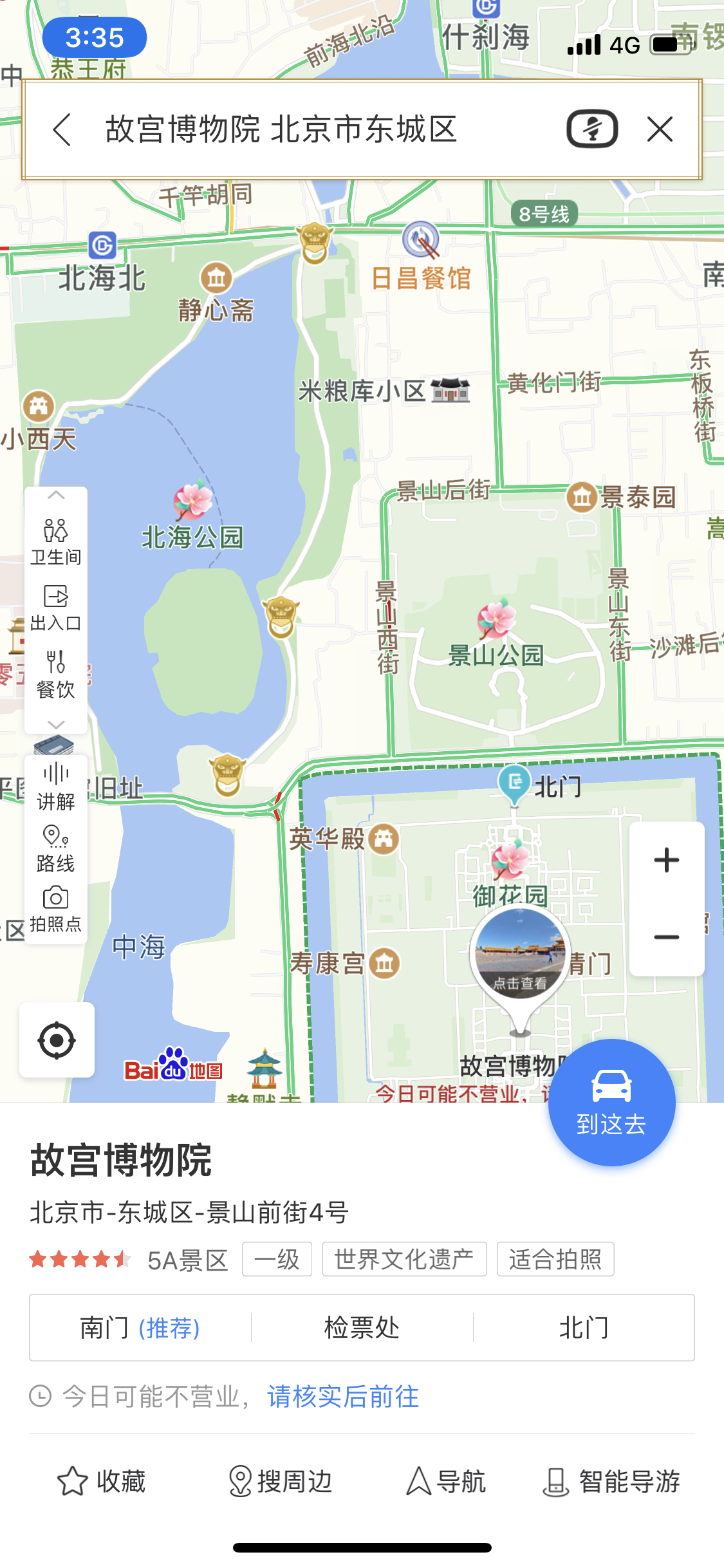 第二天可以坐着五号线逛雍和宫、国子监,之后可以坐公交到北海、景山、恭王府等等,晚上可以逛南锣后海,这些地方离得都很近,公共交通甚至步行就能到达。