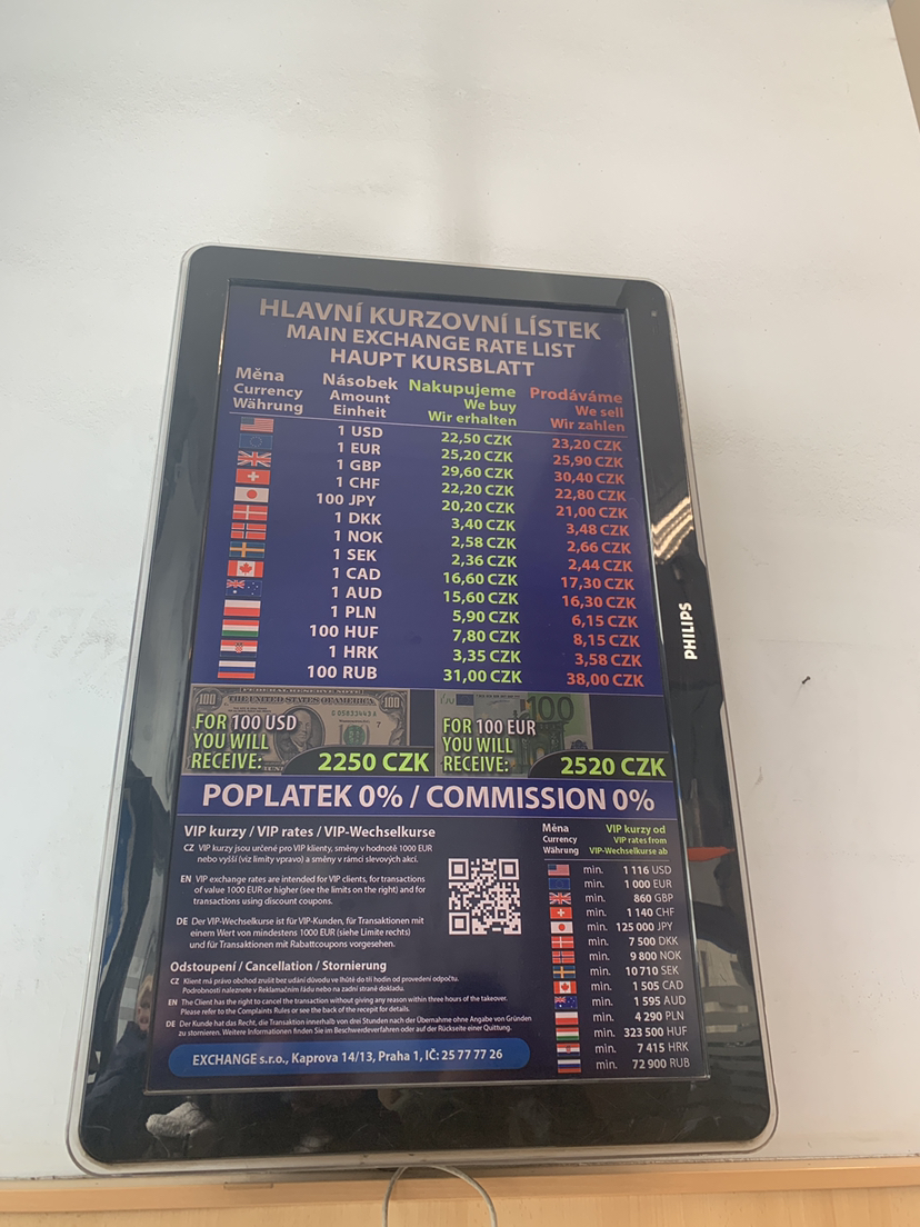 其实都差不多,反正当时在布拉格机场换的,到了市区一看,感觉亏了好多,市区有很多写着exchange的地方,这些地方的门口都用屏幕打出来汇率是多少,都不太一样,但相差也不大,不着急的话,推荐到了市区再换,或是现在机场换一点作备用,到了市区不够用了在进行兑换========== 如果你觉得TA的...显示全部