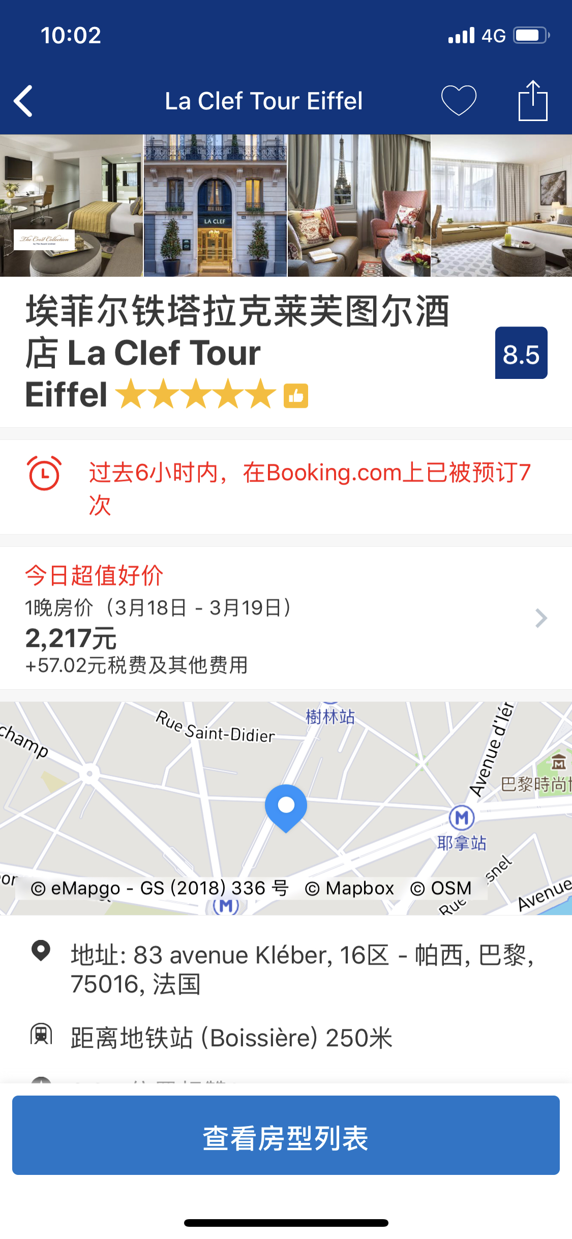 这家酒店位于老佛爷大道上 步行可至地铁站 老佛爷 而且街区很安全安静 可定高级房 有面对街区的阳台 洗漱用品都是nuxe 很棒