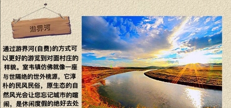 (10)淳朴的民风民情,原生态的自然风光会让您忘记那城市的喧闹,忘记那拥挤的人群,忘记那高楼大厦,让您感受浓厚的异国--俄罗斯民俗风情在2005年被cctv评为“中国十大魅力名镇”之一。从小镇走到河畔拿着望远镜可以直接看到对面俄罗斯人的生活,感受一下异国风情。