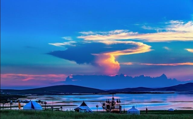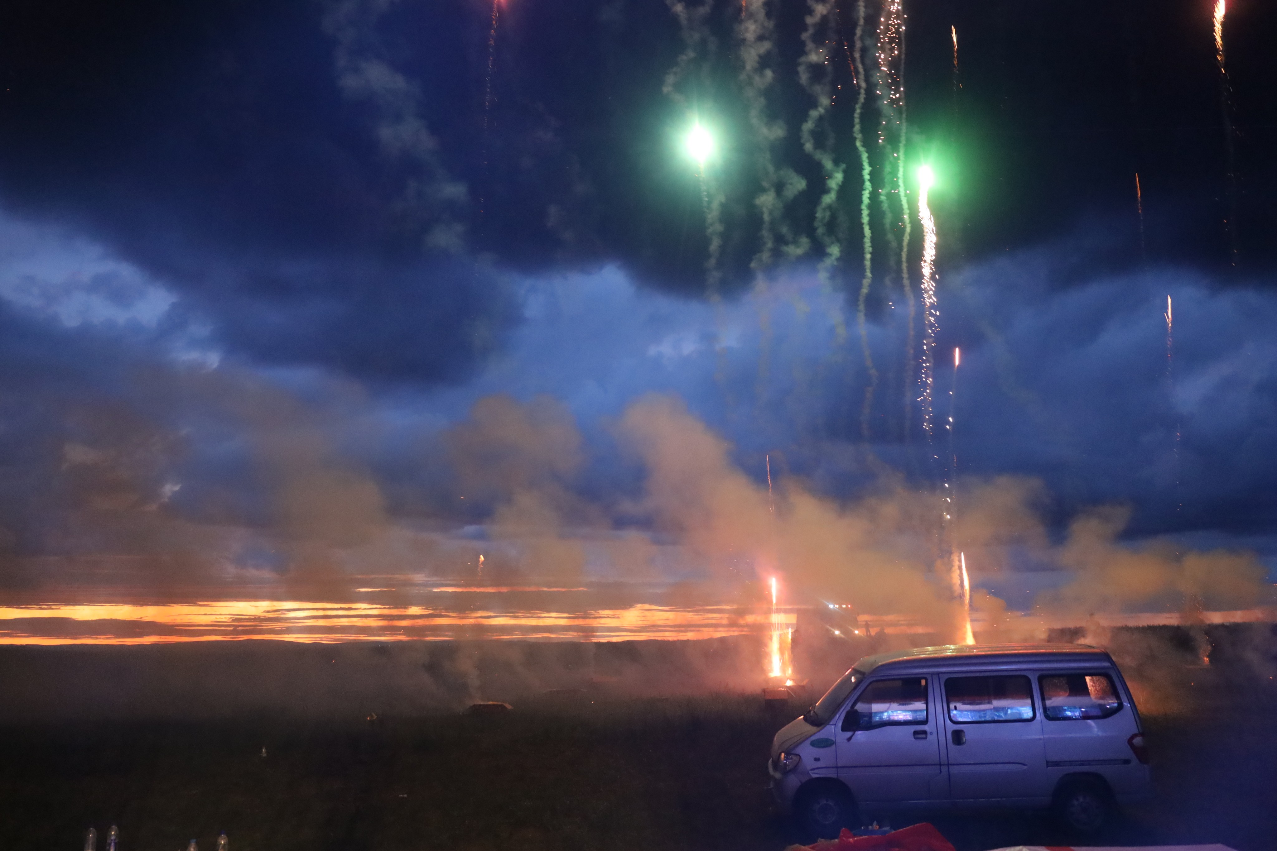 傍晚时分到达 黑山 头,下马酒,献哈达,烤全羊,篝火晚会,放烟花,看流星…… 黑山 头的夜晚美好得有些不真实…… 敬天敬地敬祖先,喝完下马酒才能成为草原尊贵的客人。