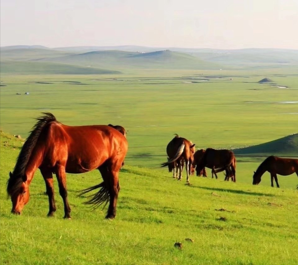 南部还有呼伦湖,是内蒙古第一大湖泊,可以用碧波荡漾来形容是草原的一部分,内蒙古有一首民歌,《大草原》,用来形容这里在合适不过了,“我的心儿在天边,天边有一片辽阔的大草原,草原茫茫天地间”,在可以感受真正草原的壮美和辽阔